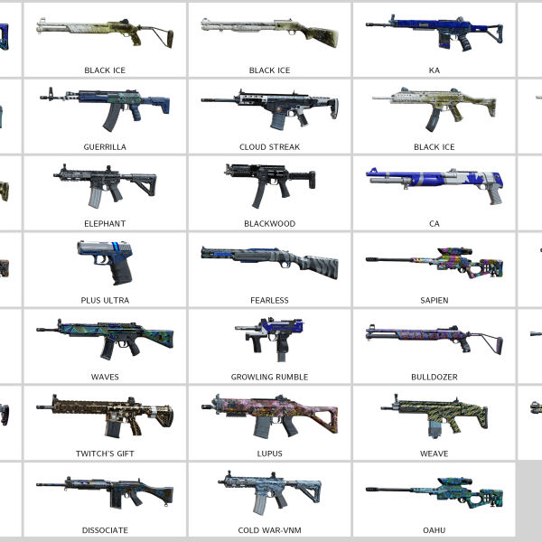 Some of Other Skins: Wild Instinct (Vector), Fray Instrument (FMG-9), New Notches (P226), Target (R4C), Lliqlla Strips (G8A1), Autumn Longbow (K1A), Ceifador (PARA-308), Nighthaven MK0 (PDW9)…