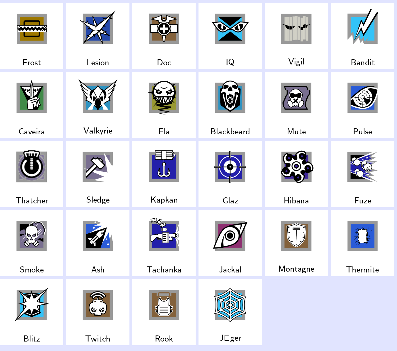 Some Operators: Frost, Lesion, Doc, Iq, Vigil, Bandit, Caveira, Valkyrie, Ela, Blackbeard…