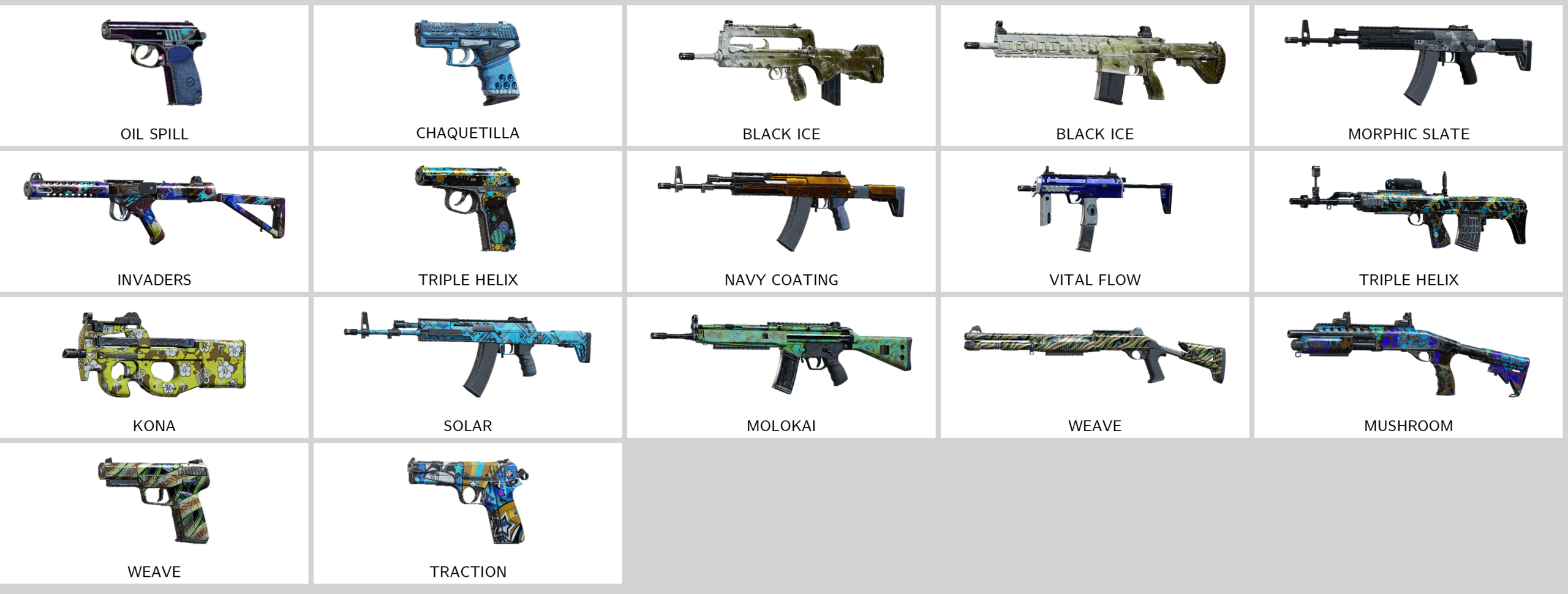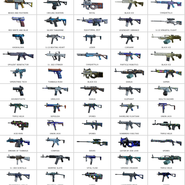 Some of Other Skins: Oil Spill (PMM), Chaquetilla (USP40), Triple Helix (PMM), Morphic Slate (AK12), Triple Helix (OTs-03), Navy Coating (AK12), Vital Flow (MP7), Acid Rain (MP5)…
