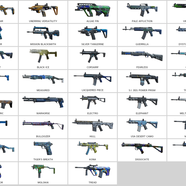 Some of Other Skins: Lacquered Elegance (F2), Gleipnir (MP7), Bundeswehr (552 Commando), On Wings Of Pearl (9mm C1), Datum Processor (AUG A3), Cloud Streak (ARX200), Target (R4C), Amplified (SIX12)…