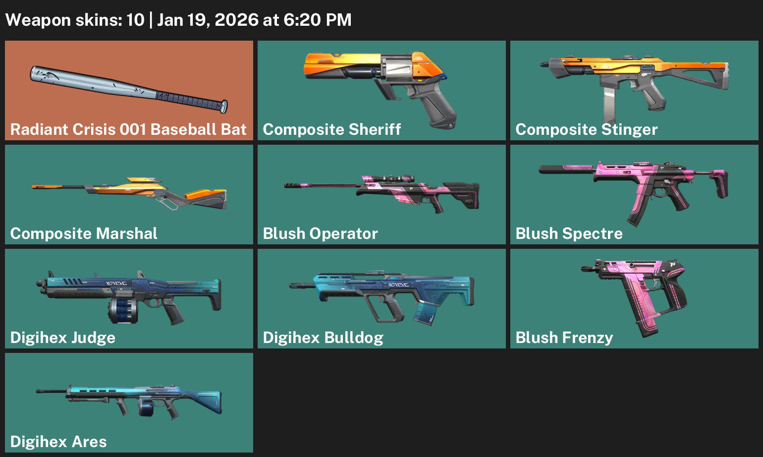 HomeValorantValorant Accounts NA Region NA | 10 Skins | exp NO RANK | Blush Operator | Blush Frenzy | Composite Marshal | Radiant Crisis 001 Baseball Bat | #NGY7446