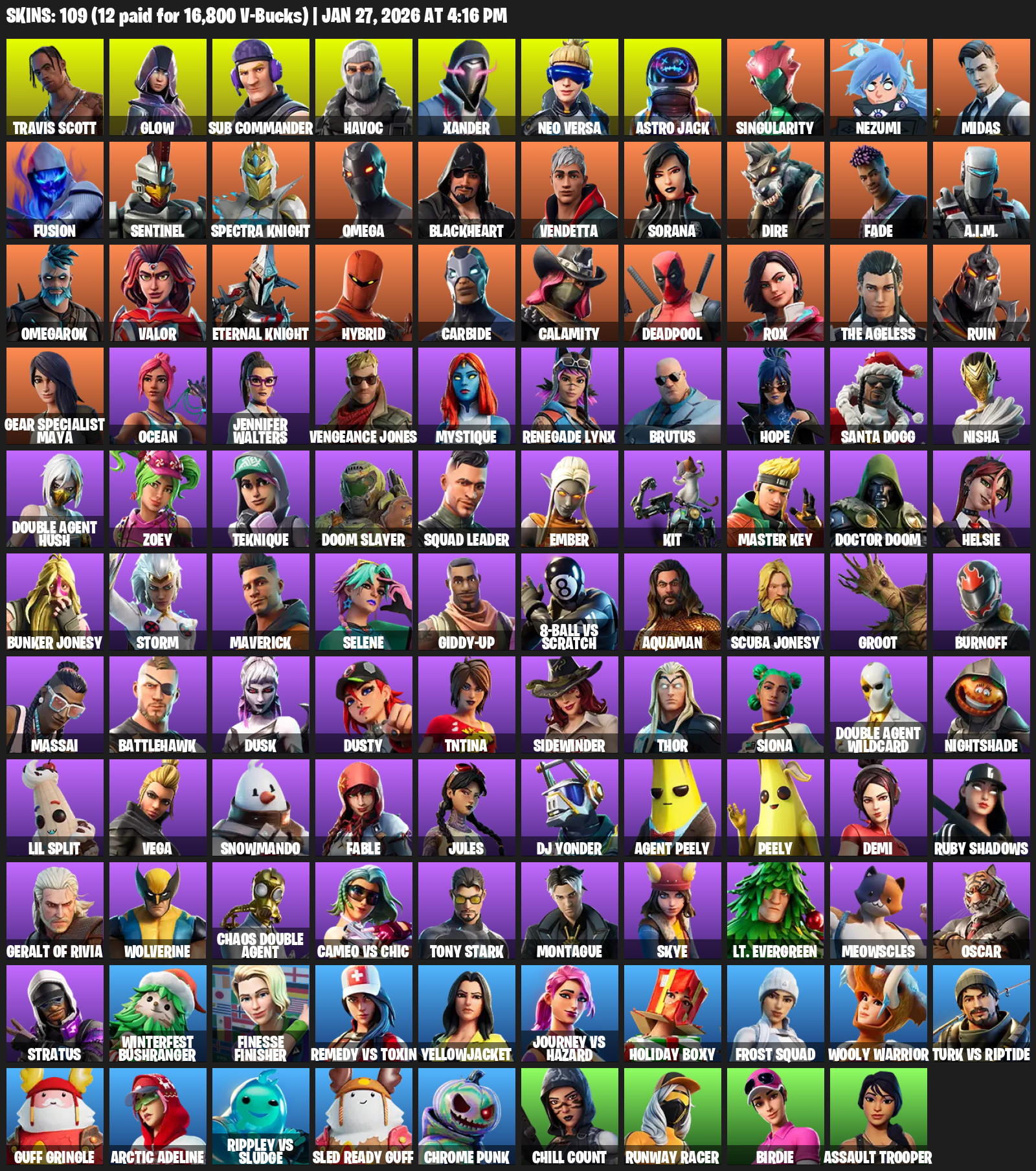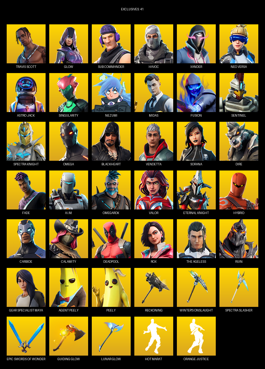 Travis Scott, Omega, Gear Specialist Maya, Glow, Sub Commander, Havoc, Xander, Neo Versa, Astro Jack, Singularity, Nezumi, Midas, Fusion, Sentinel, Spectra Knight, Blackheart, Vendetta, Sorana, Dire, Fade
