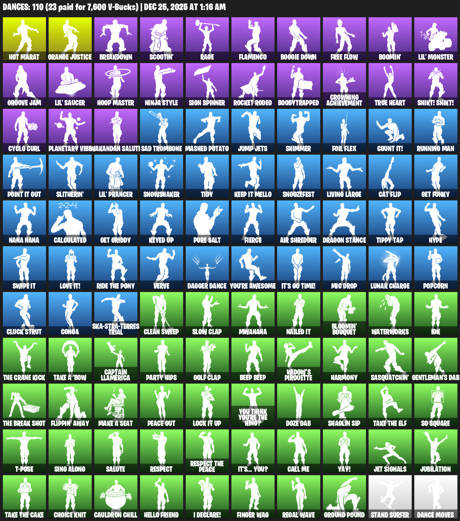 Hot Marat, Orange Justice, Breakdown, Scootin’, Rage, Flamenco, Boogie Down, Free Flow, Boomin’, Lil’ Monster, Groove Jam, Hoop Master, Ninja Style, Sign Spinner, Rocket Rodeo, Boobytrapped, Crowning Achievement, True Heart, Snikt! Snikt!