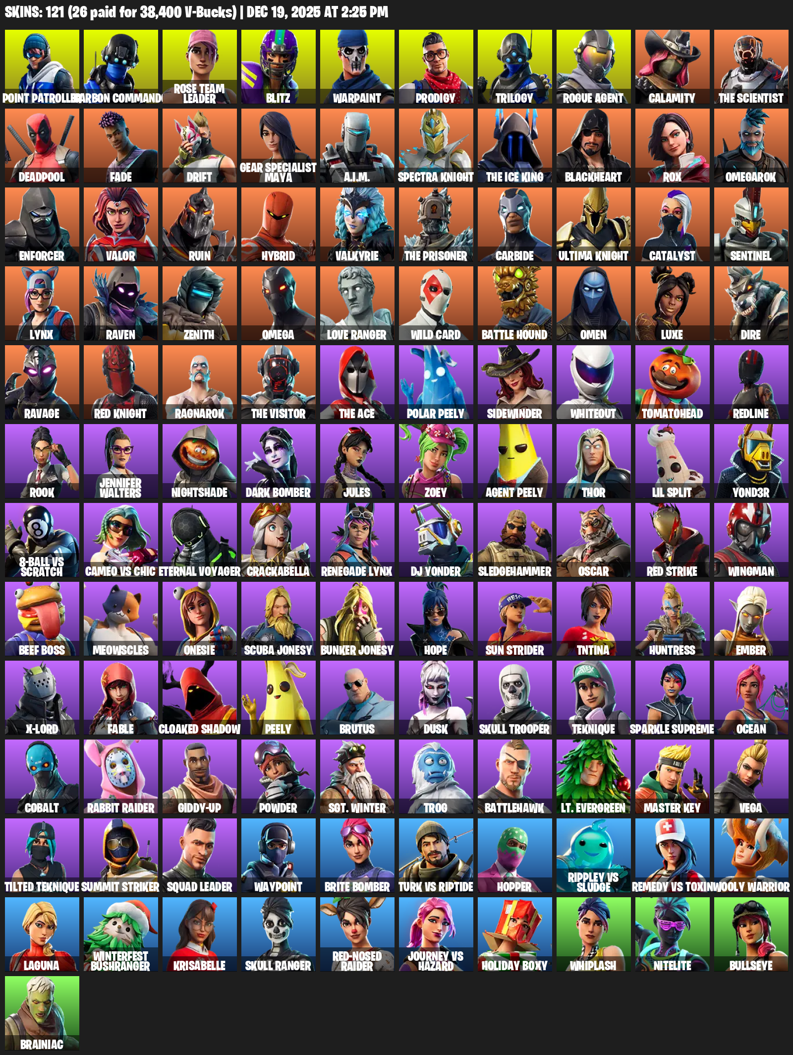 [PC] | 121 skins | OG STW | Omega | Reaper Axe | Point Patroller | Carbon Commando | Rose Team Leader | Blitz | Warpaint | Prodigy | #OBJ3395