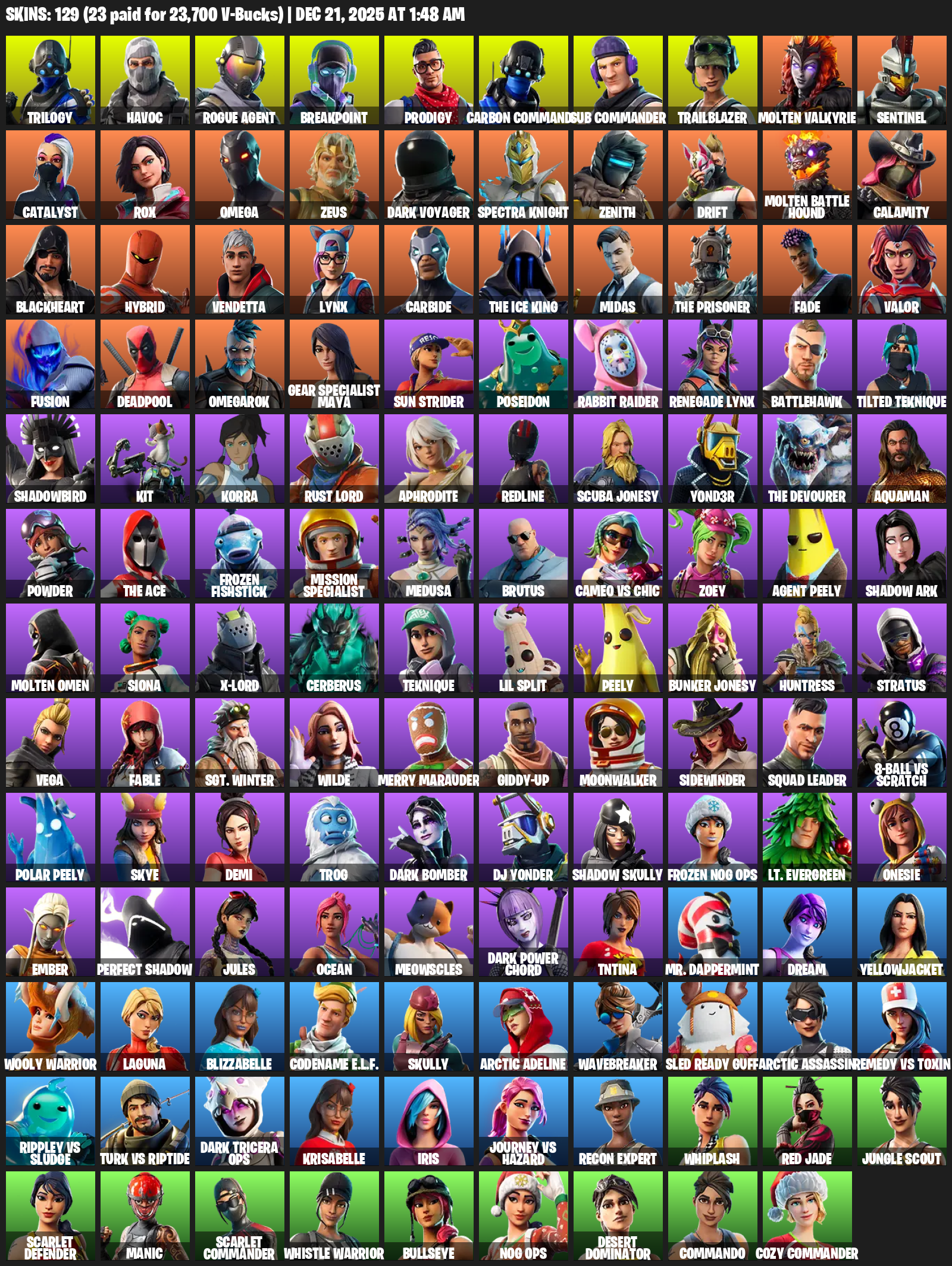 [PC] | 129 skins | 2000 V-bucks | Merry Mint Axe | Take The L | Omega | Trilogy | Havoc | Rogue Agent | Breakpoint | Prodigy | #LVQ6715