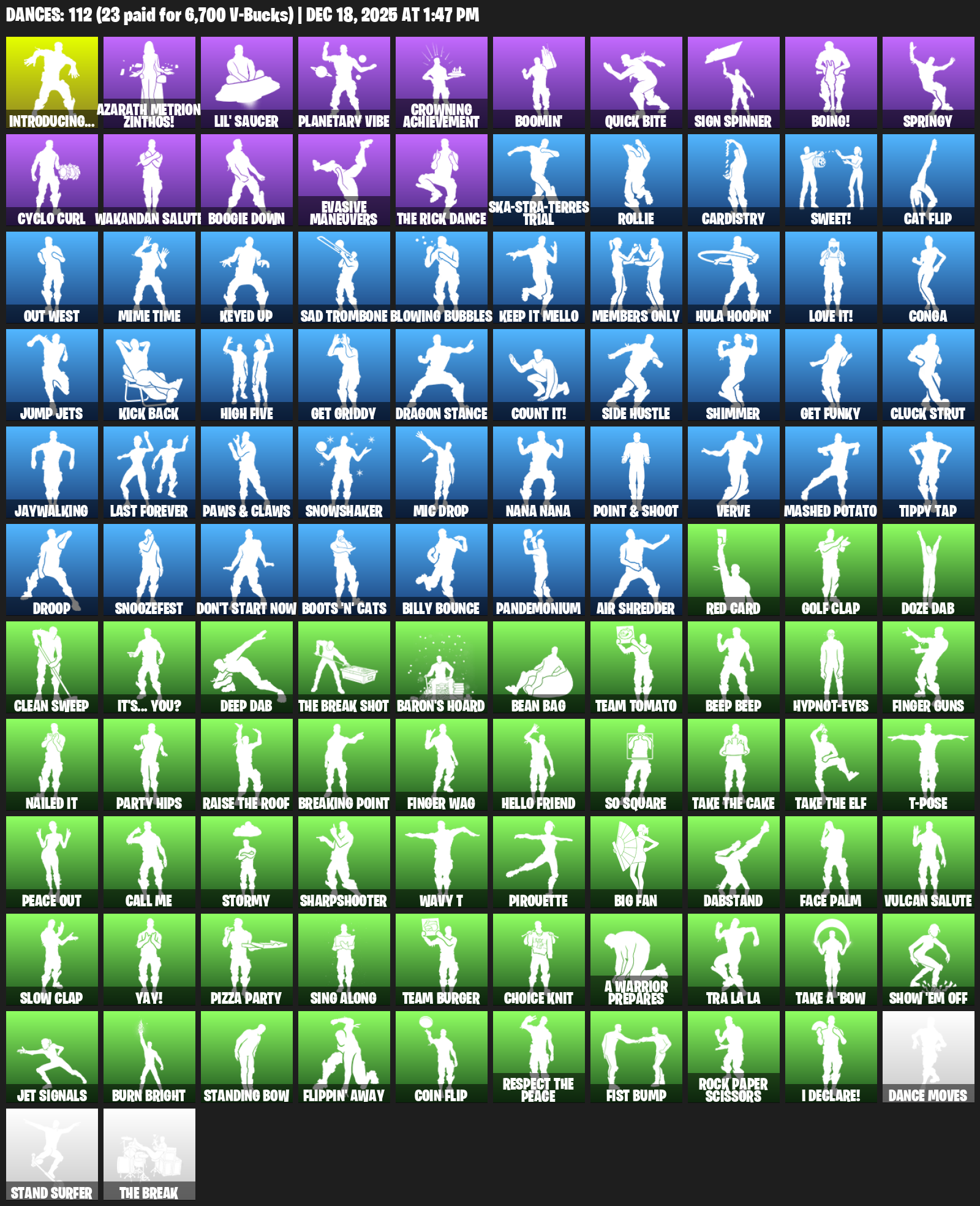Introducing…, Azarath Metrion Zinthos!, Lil’ Saucer, Planetary Vibe, Crowning Achievement, Boomin’, Quick Bite, Sign Spinner, Boing!, Springy, Cyclo Curl, Wakandan Salute, Boogie Down, Evasive Maneuvers, Ska-stra-terrestrial, Rollie, Cardistry, Sweet!, Cat Flip