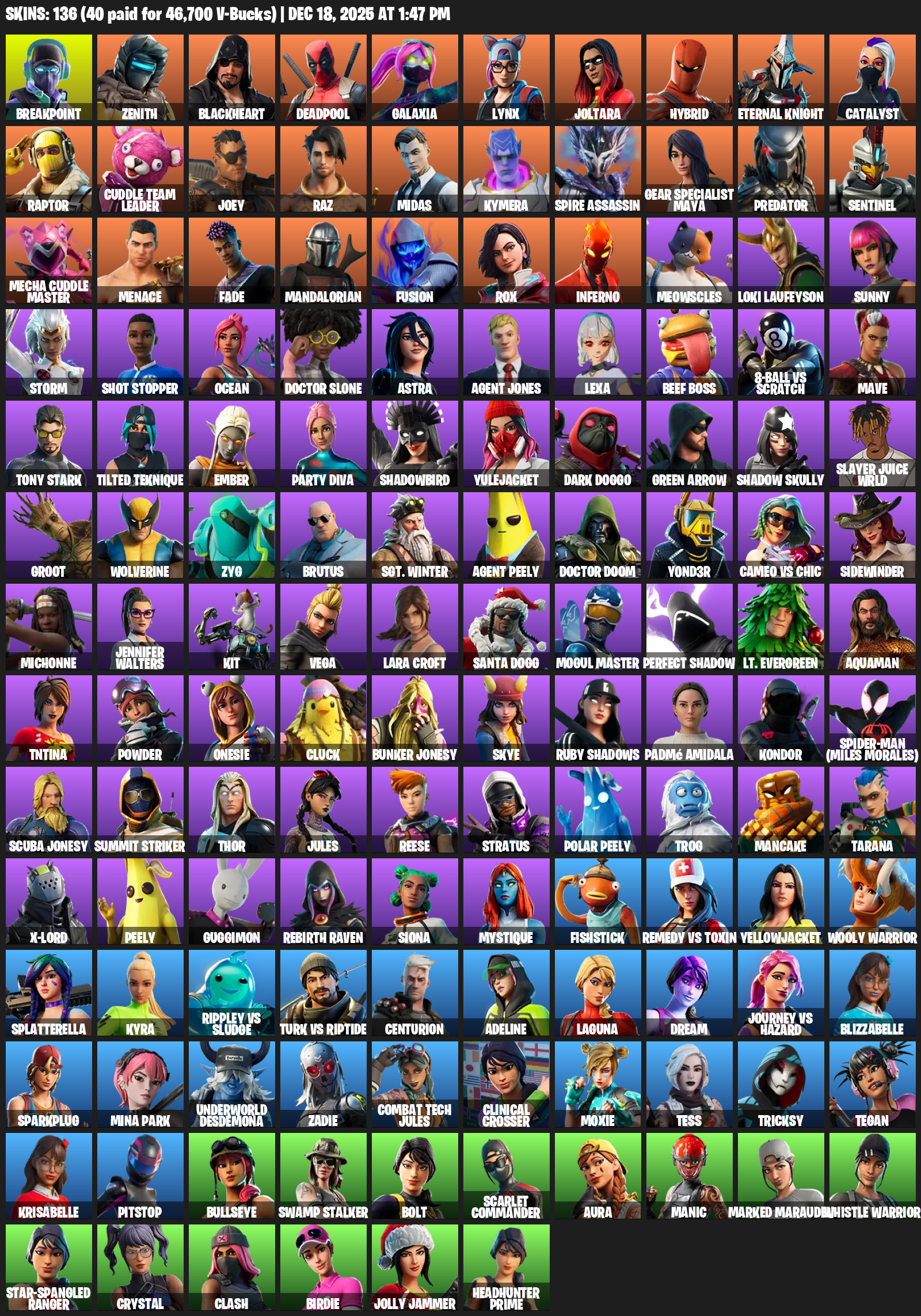 [PC] | 136 skins | Leviathan Axe | Lara Croft | Breakpoint | Zenith | Blackheart | Deadpool | Galaxia | Lynx | Joltara | Hybrid | #PMN4916