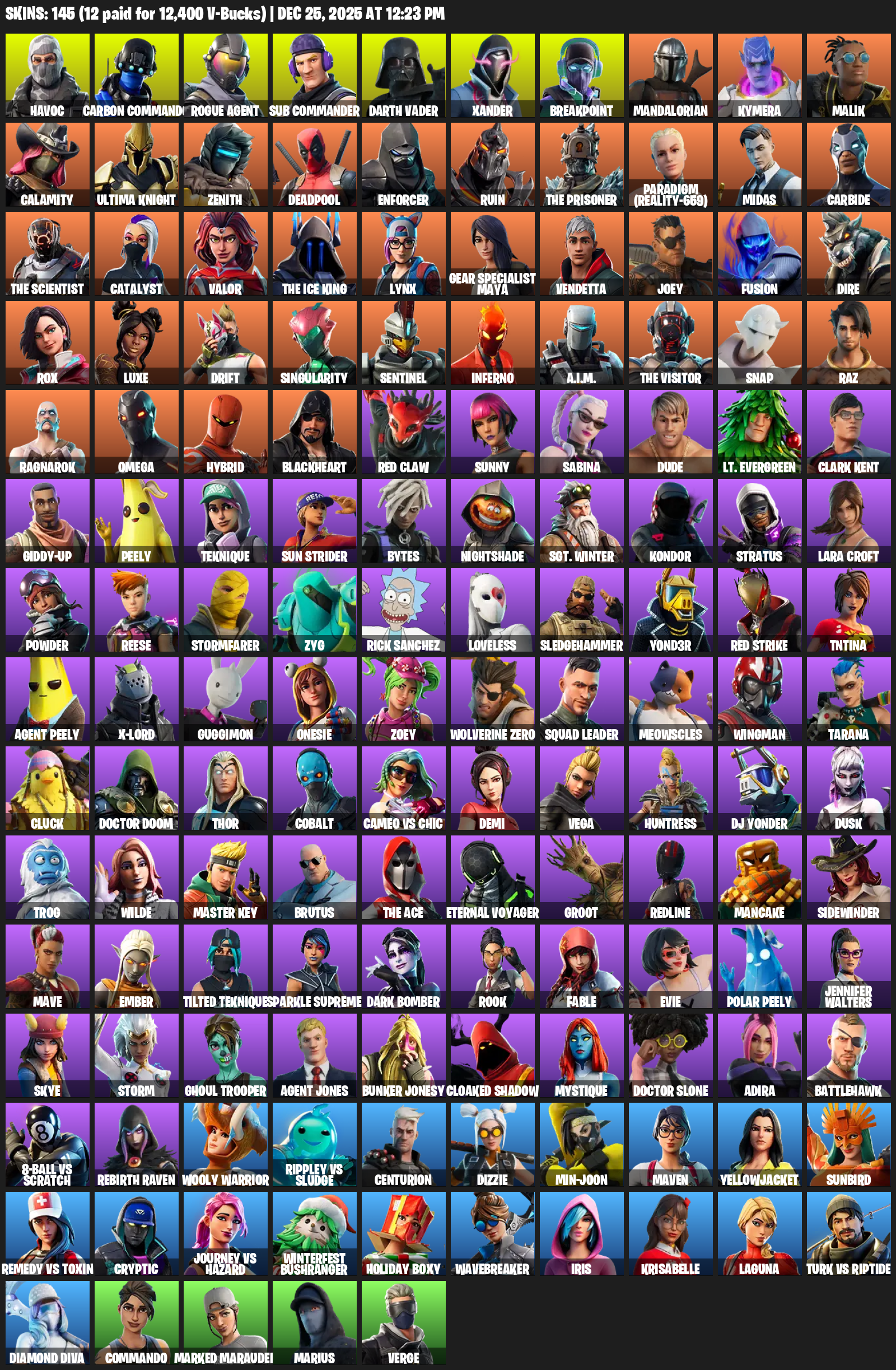 [PC] | 145 skins | Omega | Lara Croft | Reaper Axe | Havoc | Carbon Commando | Rogue Agent | Sub Commander | Darth Vader | Xander | #CRB4083