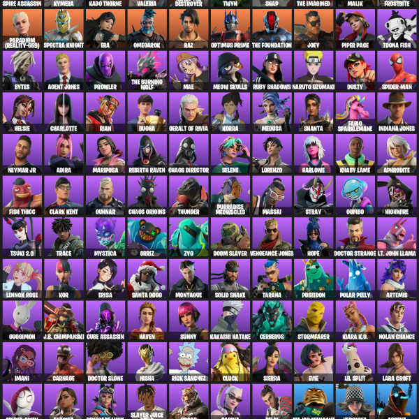 Gear Specialist Maya, Lara Croft, Fixer, Sultura, Warpaint, Cloud Striker, Rose Team Leader, Breakpoint, Neo Versa, Vi, Sentinel, Midas, Catalyst, Rox, Singularity, Nezumi, Vendetta, Torin, Eternal Knight, Sorana