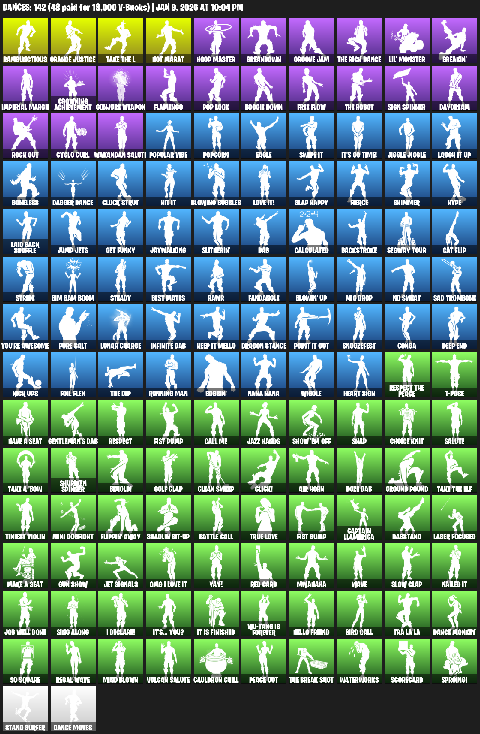 Hot Marat, Rambunctious, Orange Justice, Hoop Master, Breakdown, Groove Jam, Lil’ Monster, Breakin’, Imperial March, Crowning Achievement, Conjure Weapon, Flamenco, Pop Lock, Boogie Down, Free Flow, Sign Spinner, Daydream