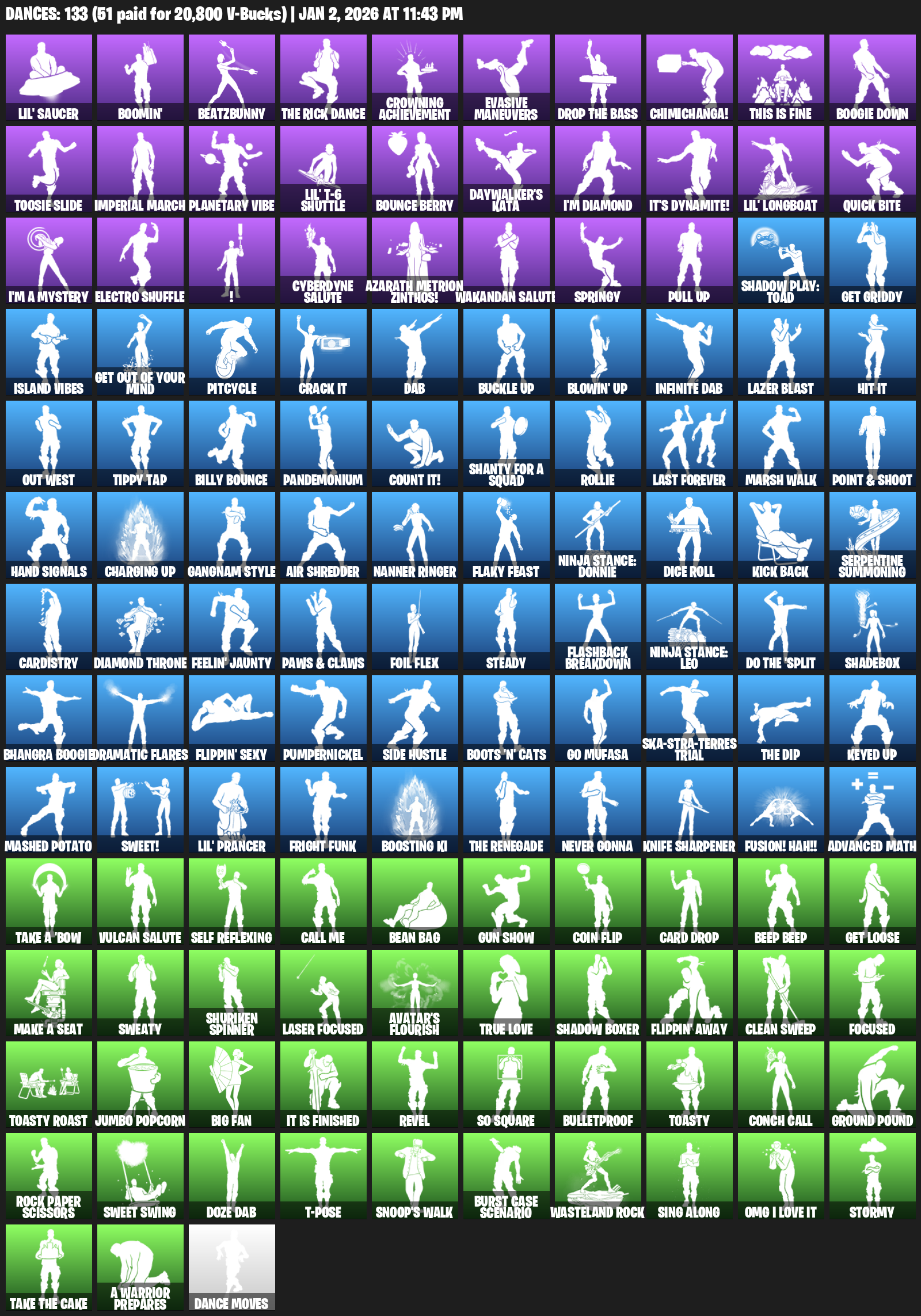 Lil’ Saucer, Boomin’, BeatzBunny, Crowning Achievement, Evasive Maneuvers, Chimichanga!, This is Fine, Boogie Down, Toosie Slide, Imperial March, Planetary Vibe, Bounce Berry, Daywalker’s Kata, I’m Diamond, It’s Dynamite!, Quick Bite
