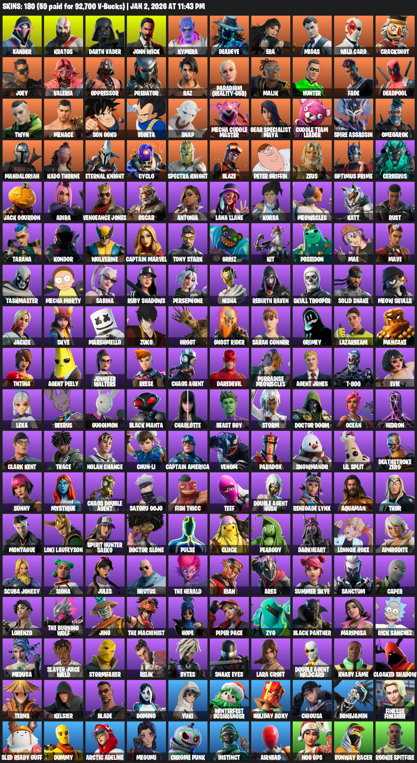 Gear Specialist Maya, Lara Croft, Xander, Kratos, Darth Vader, John Wick, Kymera, Deadeye, Era, Midas, Wild Card, Crackshot, Joey, Valeria, Oppressor, Predator, Raz, Paradigm (Reality-659), Malik, Hunter