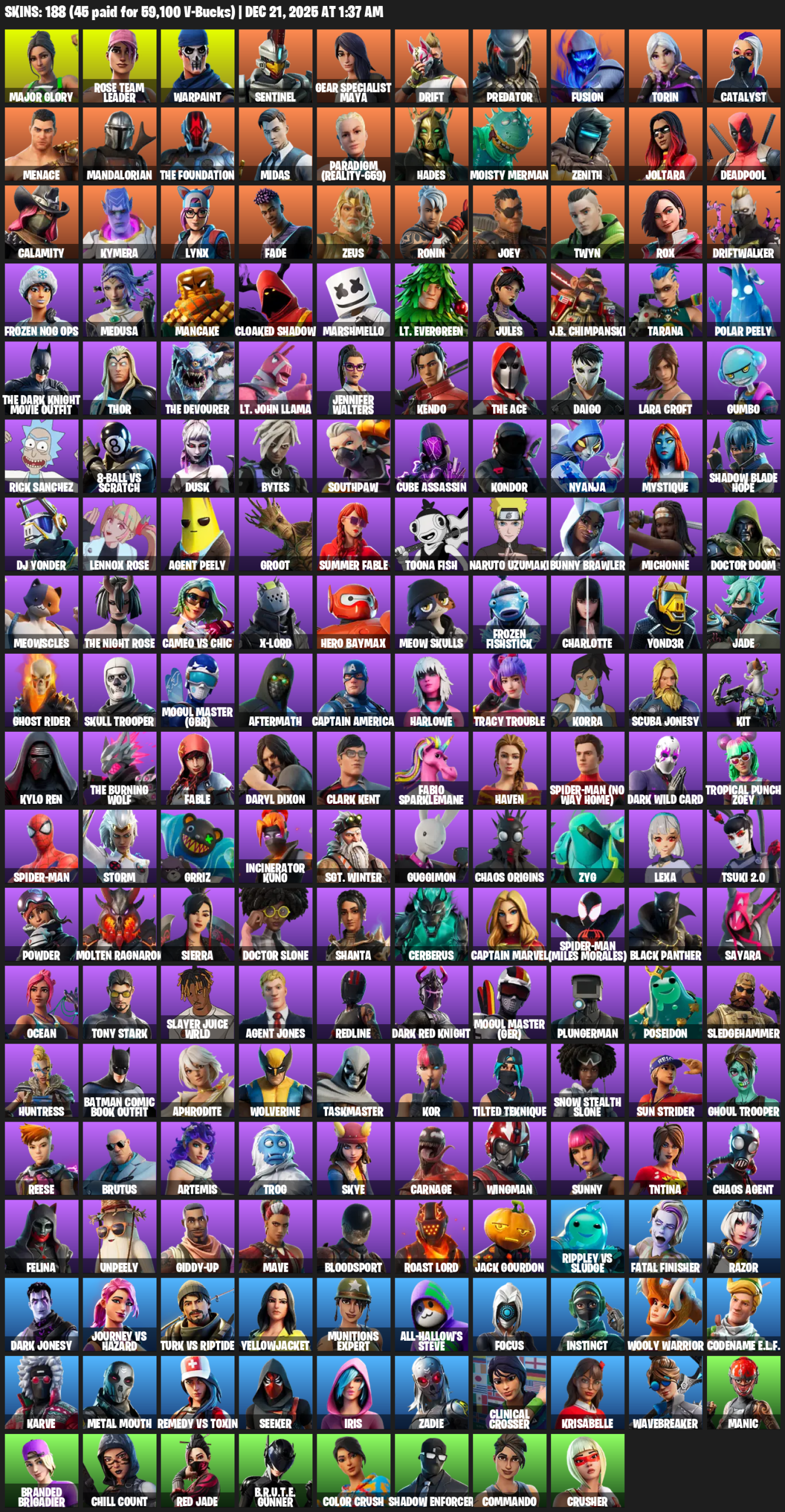 Gear Specialist Maya, Lara Croft, Major Glory, Rose Team Leader, Warpaint, Sentinel, Drift, Predator, Fusion, Torin, Catalyst, Menace, Mandalorian, The Foundation, Midas, Paradigm (Reality-659), Hades, Moisty Merman, Zenith, Joltara