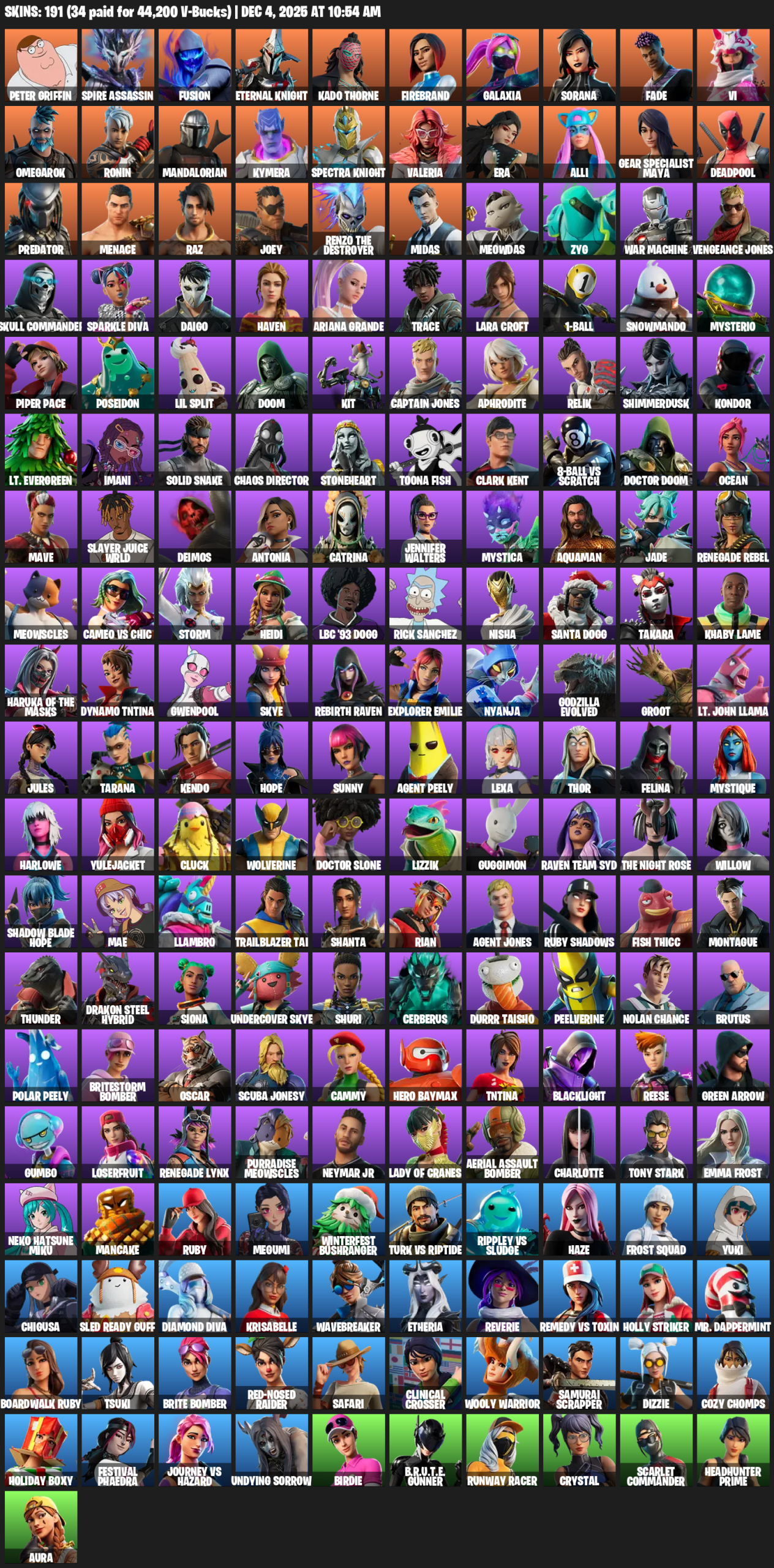 [PC] | 191 skins | Lara Croft | Peter Griffin | Spire Assassin | Fusion | Eternal Knight | Kado Thorne | Firebrand | Galaxia | Sorana | #SEX0584