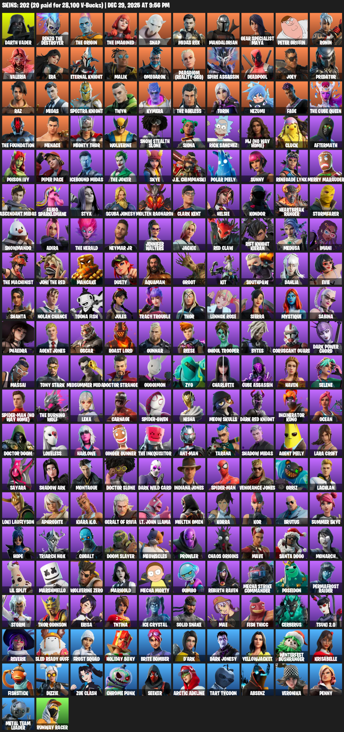 [PC] | 202 skins | Lara Croft | Darth Vader | Renzo the Destroyer | The Origin | The Imagined | Snap | Midas Rex | Mandalorian | #BVH0875