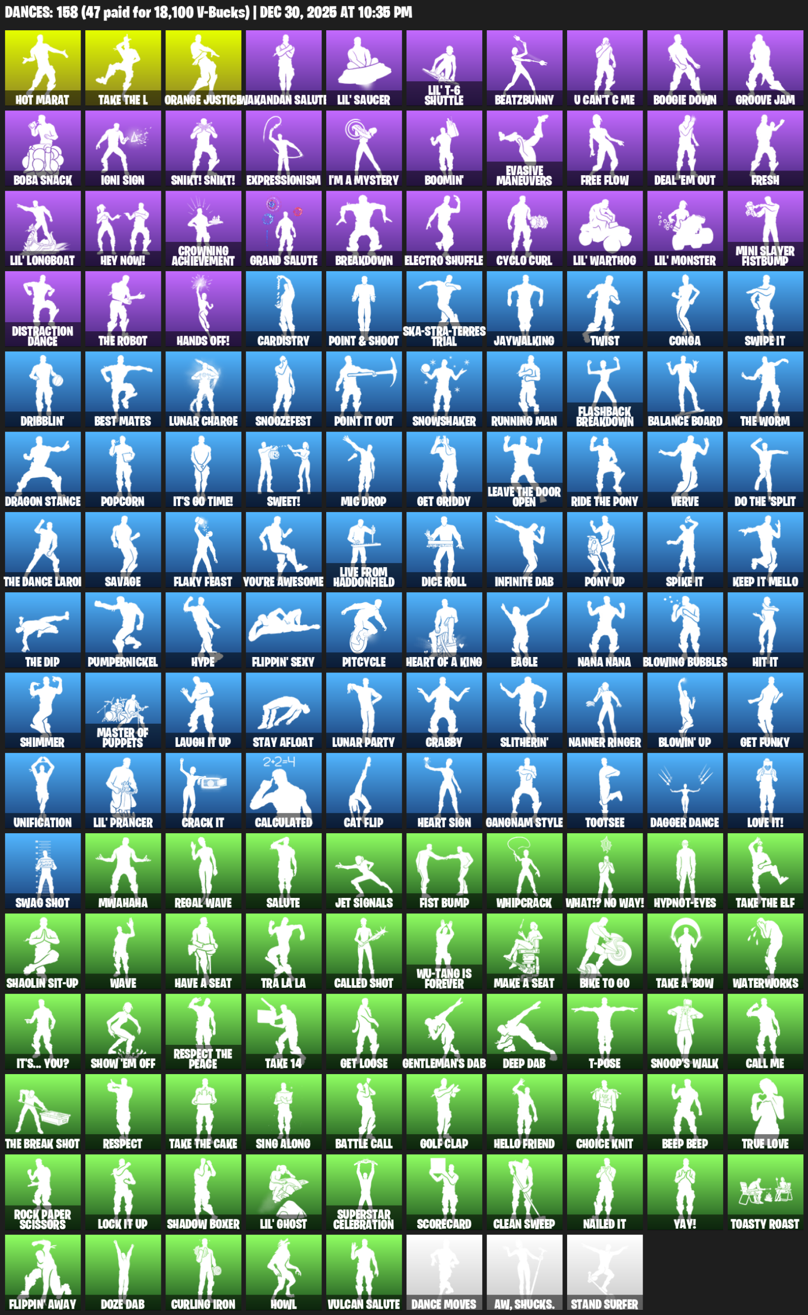 Hot Marat, Orange Justice, Wakandan Salute, Lil’ Saucer, BeatzBunny, U Can’t C Me, Boogie Down, Groove Jam, Boba Snack, Igni Sign, Snikt! Snikt!, Expressionism, I’m a Mystery, Boomin’, Evasive Maneuvers, Free Flow, Deal ‘Em Out, Fresh