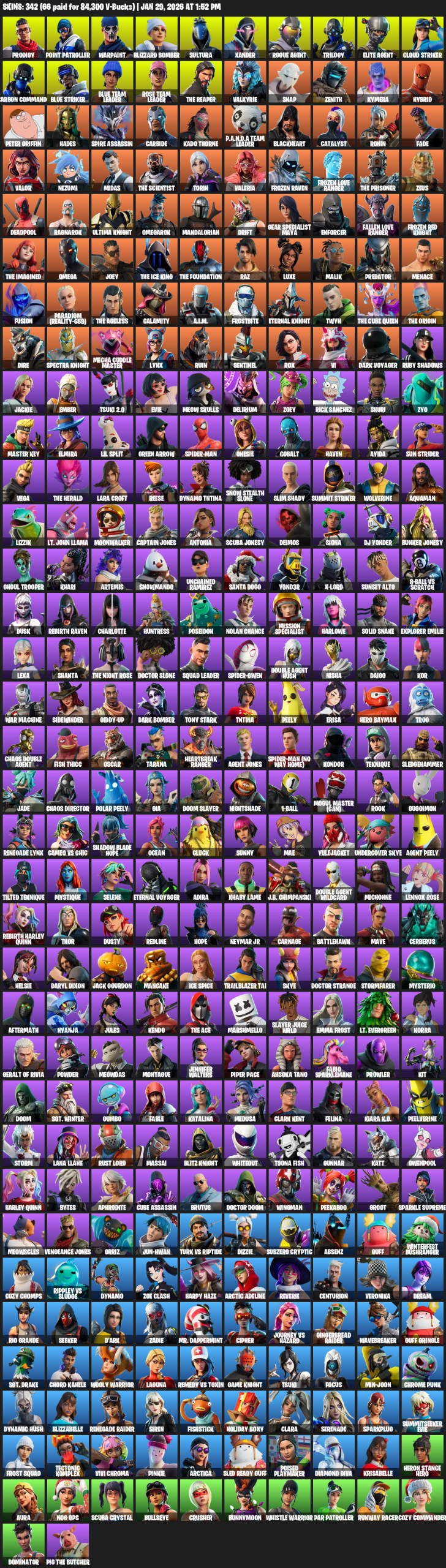 Point Patroller, Elite Agent, The Reaper, Gear Specialist Maya, Omega, Lara Croft, Renegade Raider, Prodigy, Warpaint, Blizzard Bomber, Sultura, Xander, Trilogy, Cloud Striker, Carbon Commando, Blue Team Leader, Valkyrie