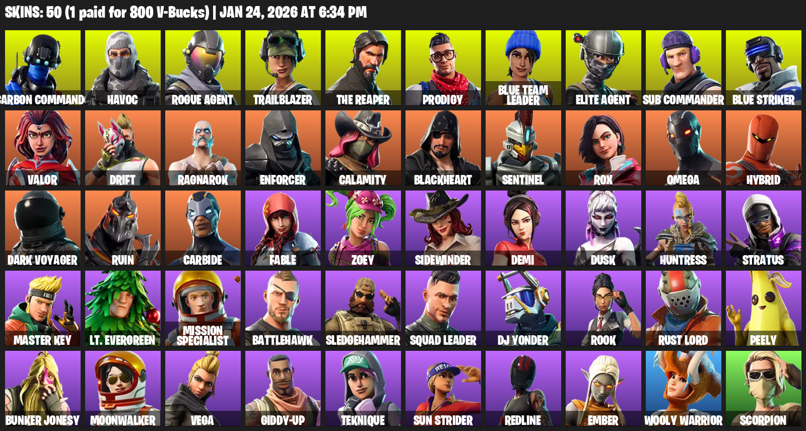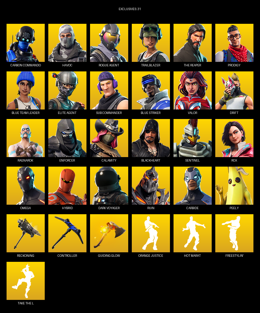 [PC] | 50 skins | Take The L | The Reaper | Elite Agent | Omega | Carbon Commando | Havoc | Rogue Agent | Trailblazer | Prodigy | #KVX0194