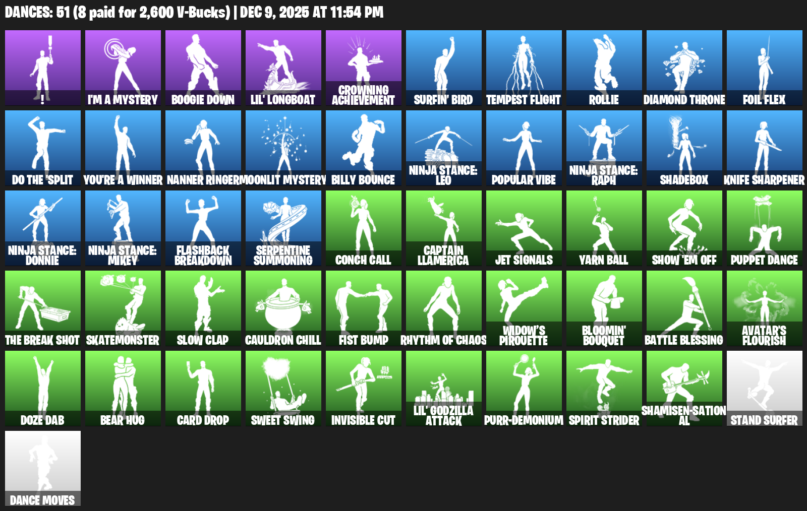 !, I’m a Mystery, Boogie Down, Lil’ Longboat, Crowning Achievement, Surfin’ Bird, Tempest Flight, Rollie, Diamond Throne, Foil Flex, Nanner Ringer, Billy Bounce, Ninja Stance: Leo, Popular Vibe, Shadebox