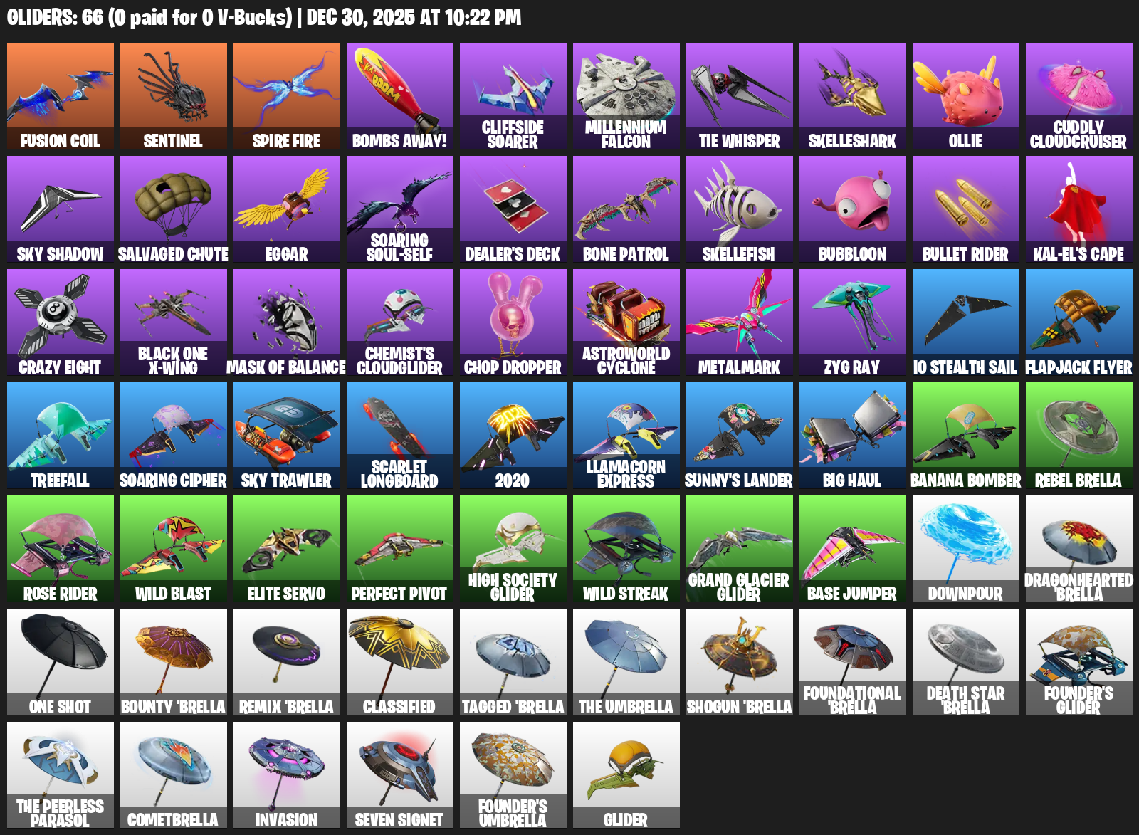 Sentinel, Spire Fire, Bombs Away!, Cliffside Soarer, Millennium Falcon, TIE Whisper, Skelleshark, Ollie, Cuddly Cloudcruiser, Salvaged Chute, Eggar, Soaring Soul-Self, Dealer’s Deck, Bone Patrol, Skellefish, Bubbloon, Bullet Rider, Kal-El’s Cape