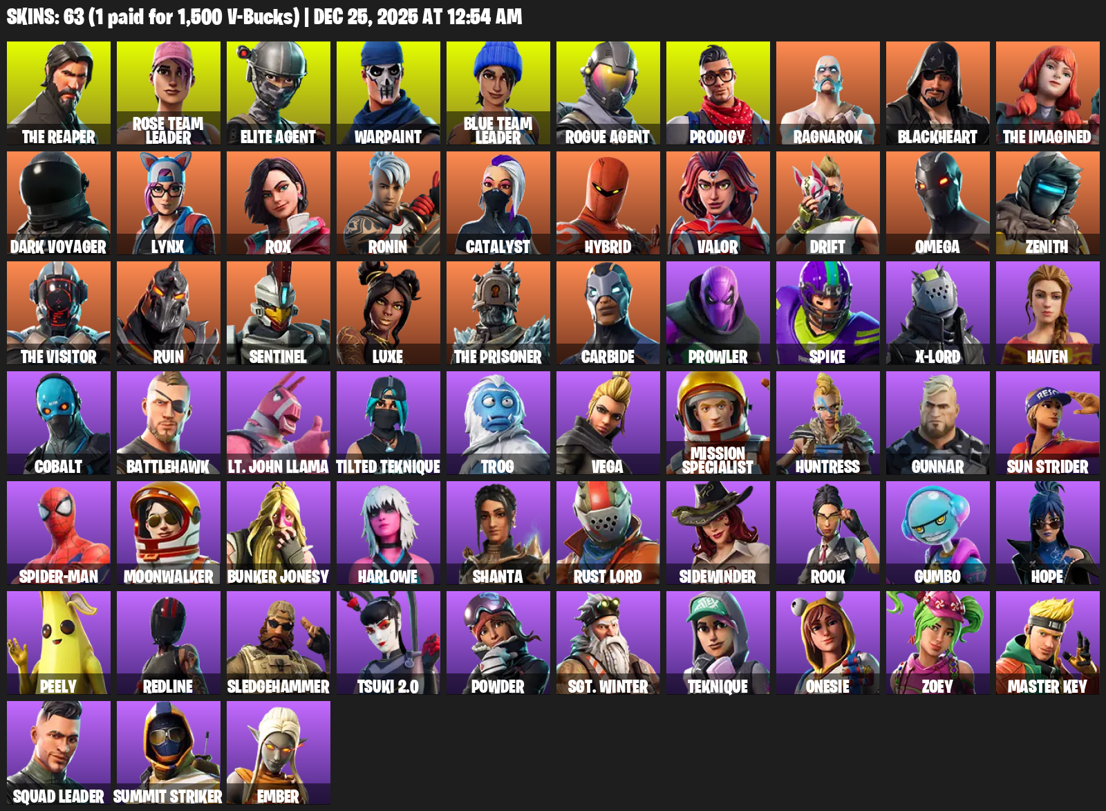 The Reaper, Elite Agent, Omega, Rose Team Leader, Warpaint, Prodigy, Ragnarok, Blackheart, Dark Voyager, Lynx, Rox, Ronin, Catalyst, Hybrid, Valor, Drift, Zenith