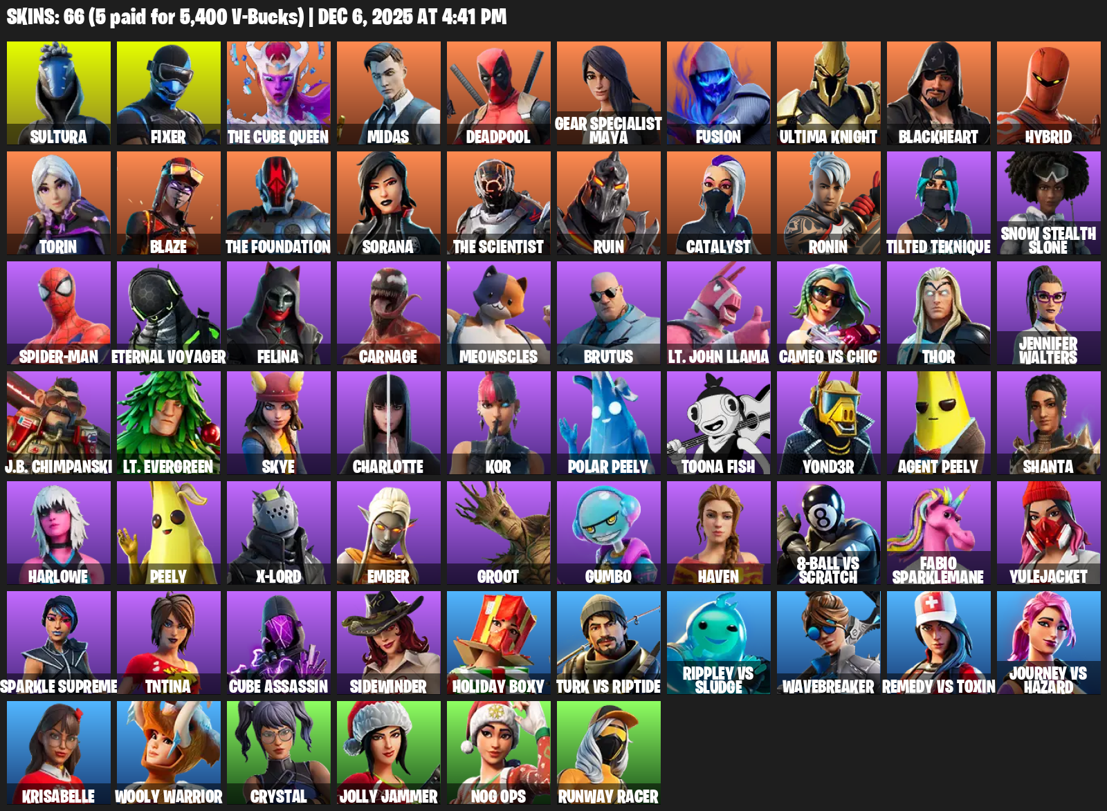Gear Specialist Maya, Sultura, Fixer, The Cube Queen, Midas, Deadpool, Fusion, Ultima Knight, Blackheart, Hybrid, Torin, Blaze, Sorana, Ruin, Catalyst, Ronin, Tilted Teknique, Snow Stealth Slone
