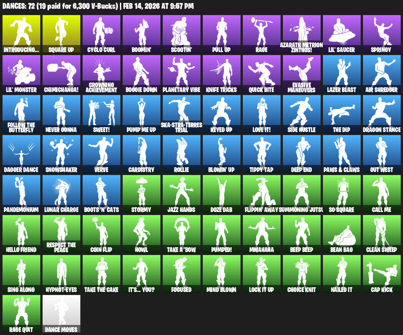 Introducing…, Square Up, Cyclo Curl, Boomin’, Scootin’, Rage, Azarath Metrion Zinthos!, Lil’ Saucer, Springy , Chimichanga!, Crowning Achievement, Boogie Down, Planetary Vibe, Knife Tricks, Quick Bite, Evasive Maneuvers, Lazer Blast, Air Shredder