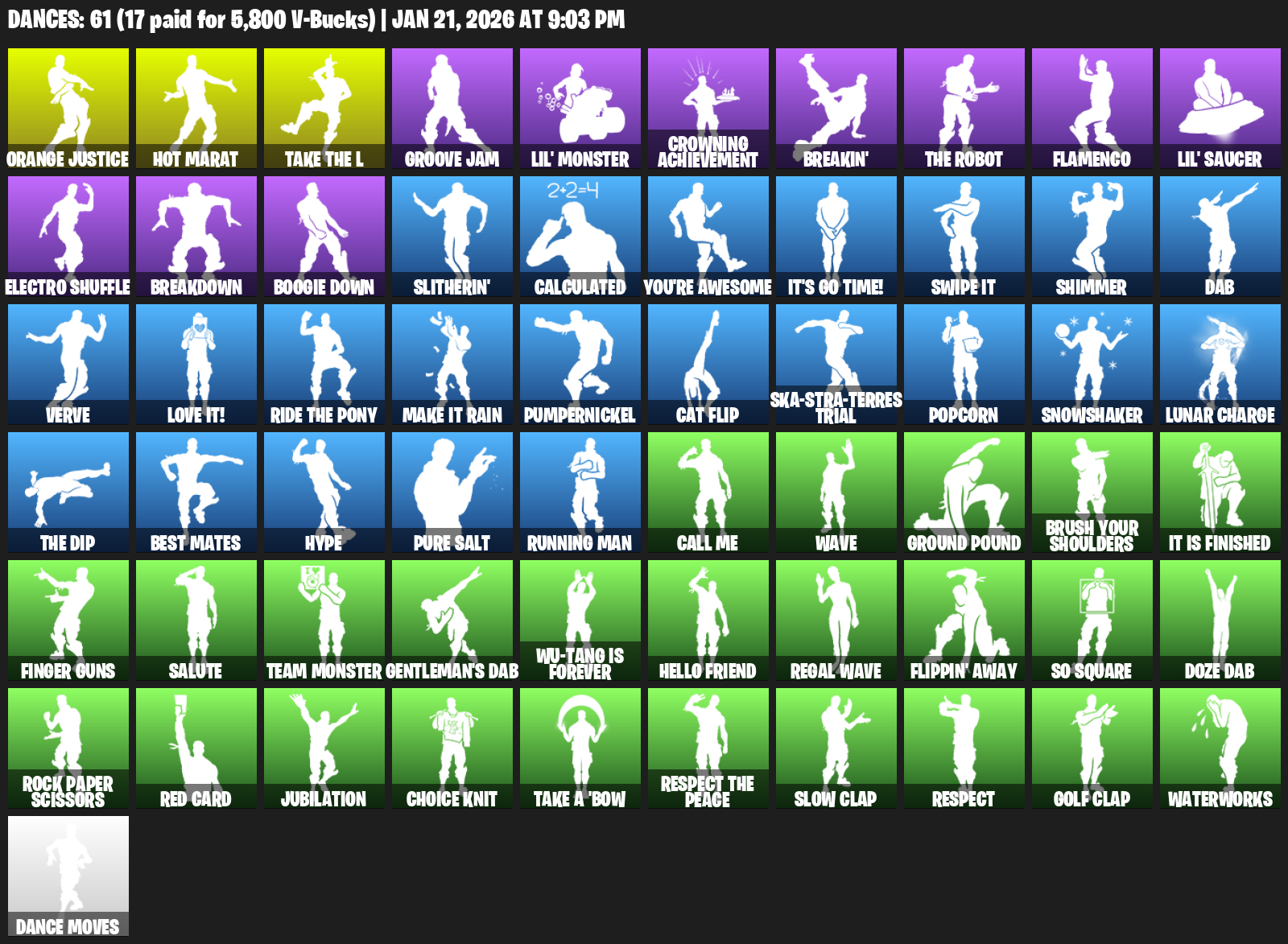 Hot Marat, Orange Justice, Groove Jam, Lil’ Monster, Crowning Achievement, Breakin’, Flamenco, Electro Shuffle, Breakdown, Boogie Down, Slitherin’, Calculated, You’re Awesome, It’s Go Time!, Swipe It, Shimmer, Dab