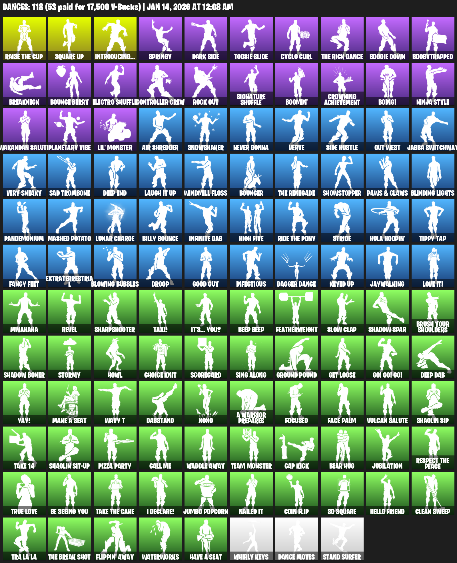Introducing…, Square Up, Springy, Dark Side, Toosie Slide, Cyclo Curl, Boogie Down, Boobytrapped, Breakneck, Bounce Berry, Electro Shuffle, Controller Crew, Rock Out, Boomin’, Crowning Achievement, Boing!, Ninja Style
