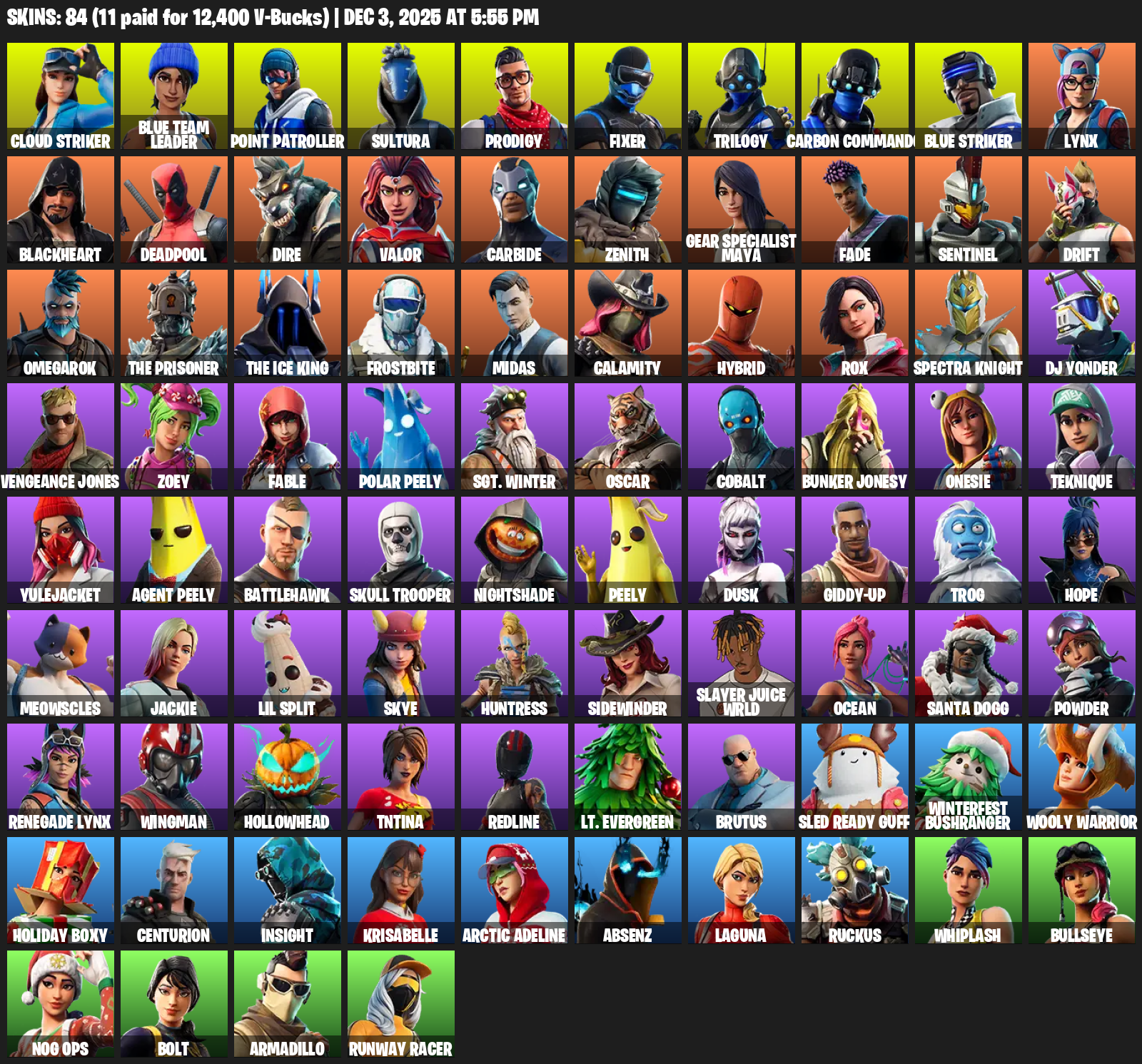 Point Patroller, Gear Specialist Maya, Cloud Striker, Blue Team Leader, Sultura, Prodigy, Fixer, Trilogy, Carbon Commando, Lynx, Blackheart, Deadpool, Dire, Valor, Carbide, Zenith, Fade, Sentinel, Drift