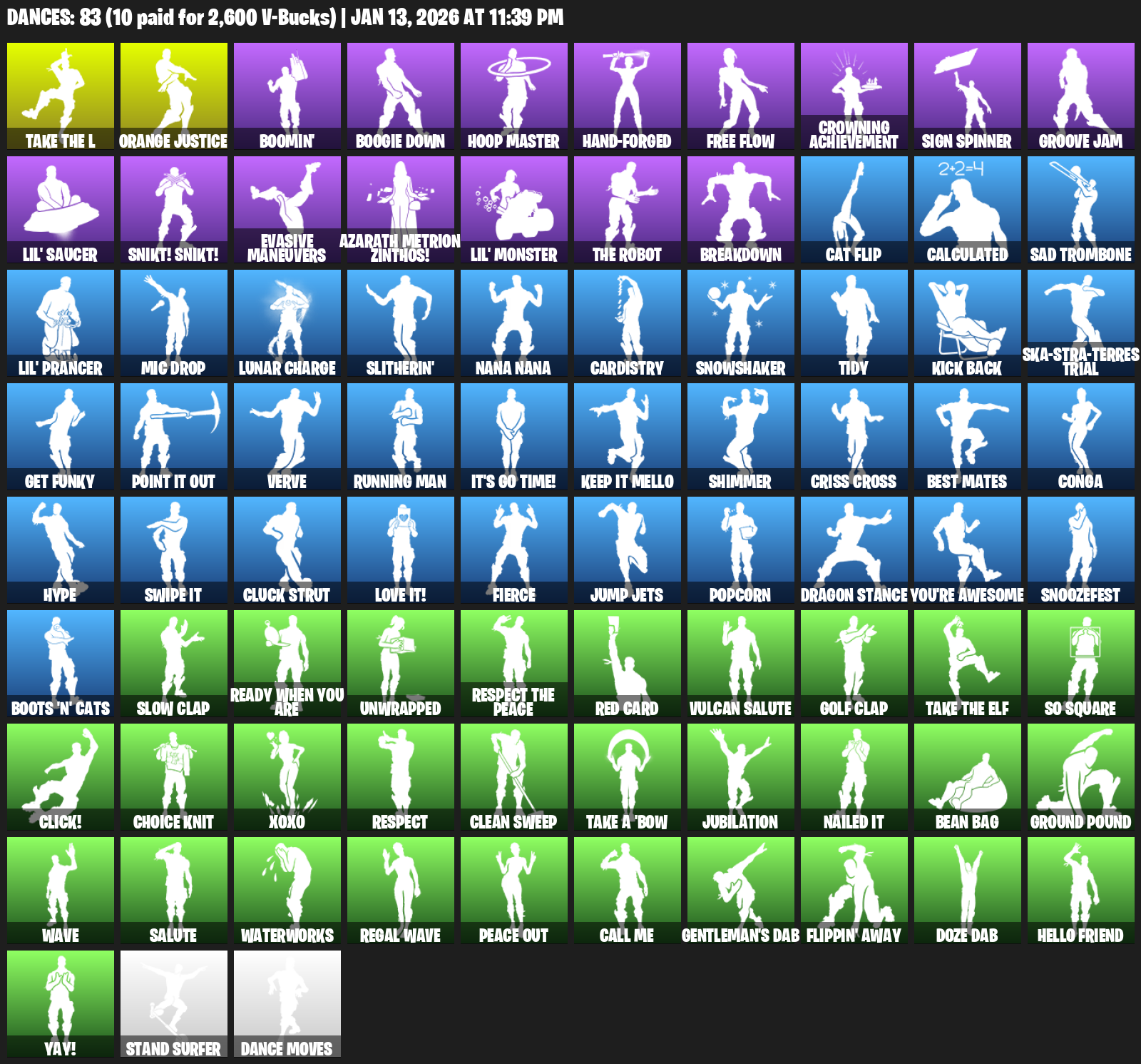 Orange Justice, Boomin’, Boogie Down, Hoop Master, Hand-Forged, Free Flow, Crowning Achievement, Sign Spinner, Groove Jam, Lil’ Saucer, Snikt! Snikt!, Evasive Maneuvers, Azarath Metrion Zinthos!, Breakdown, Cat Flip, Calculated, Sad Trombone