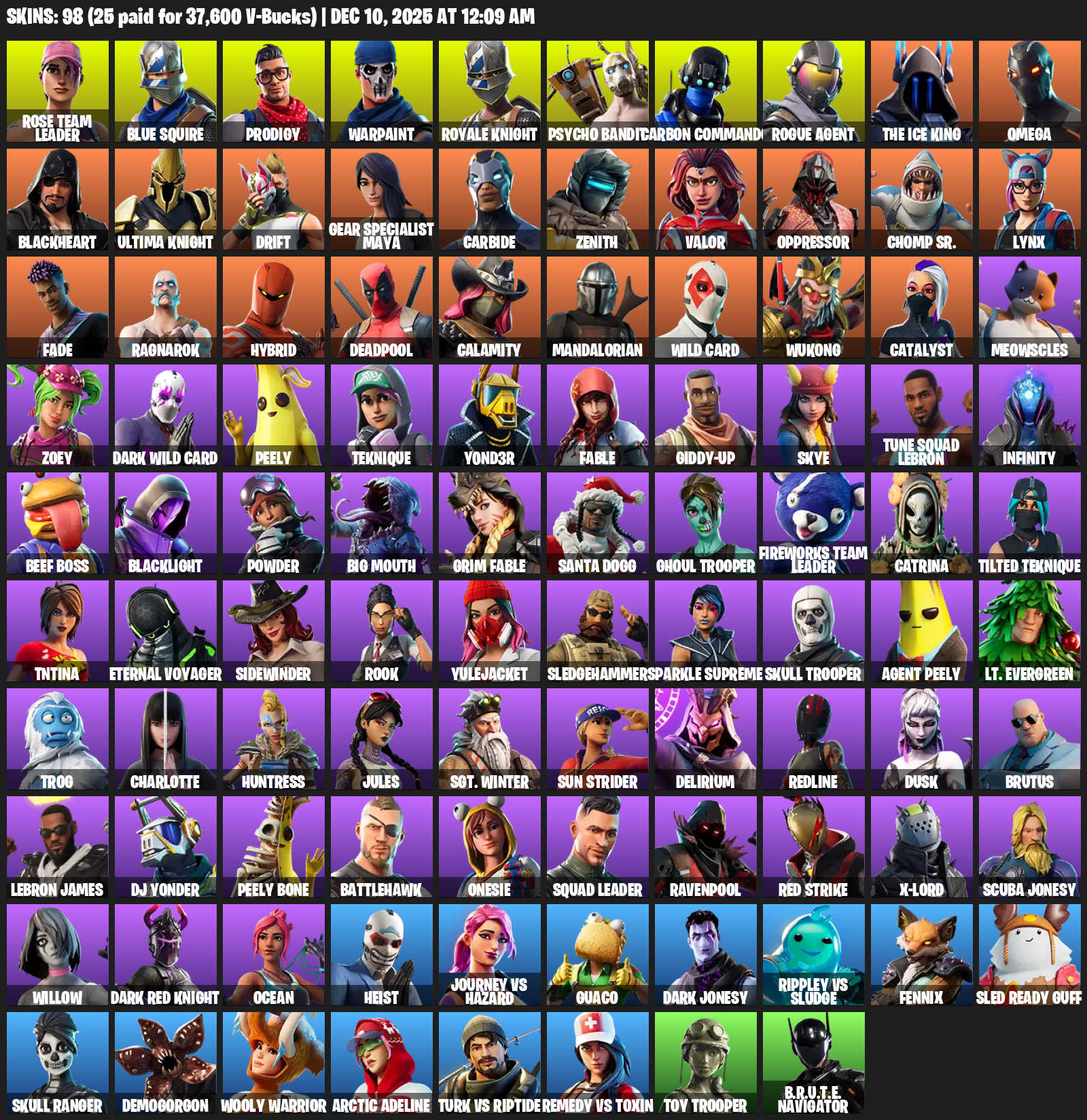 Blue Squire, Royale Knight, Omega, Gear Specialist Maya, Rose Team Leader, Prodigy, Warpaint, Psycho Bandit, Carbon Commando, Rogue Agent, The Ice King, Blackheart, Drift, Carbide, Zenith, Valor, Oppressor, Chomp Sr., Lynx