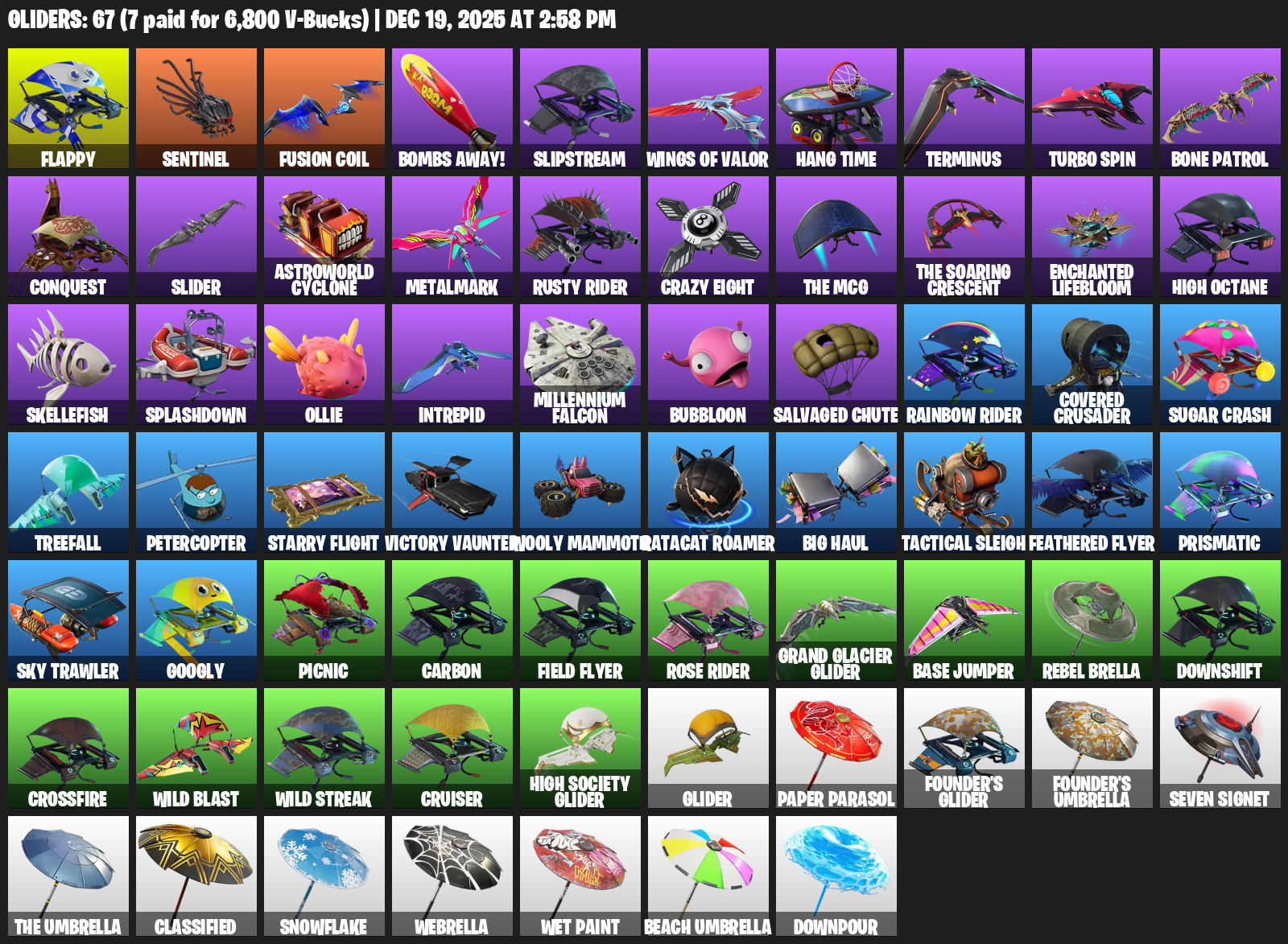 Flappy, Bombs Away!, Slipstream, Wings of Valor, Hang Time, Terminus, Turbo Spin, Bone Patrol, Conquest, Slider, Astroworld Cyclone, Metalmark, Rusty Rider, Crazy Eight, Enchanted Lifebloom, High Octane