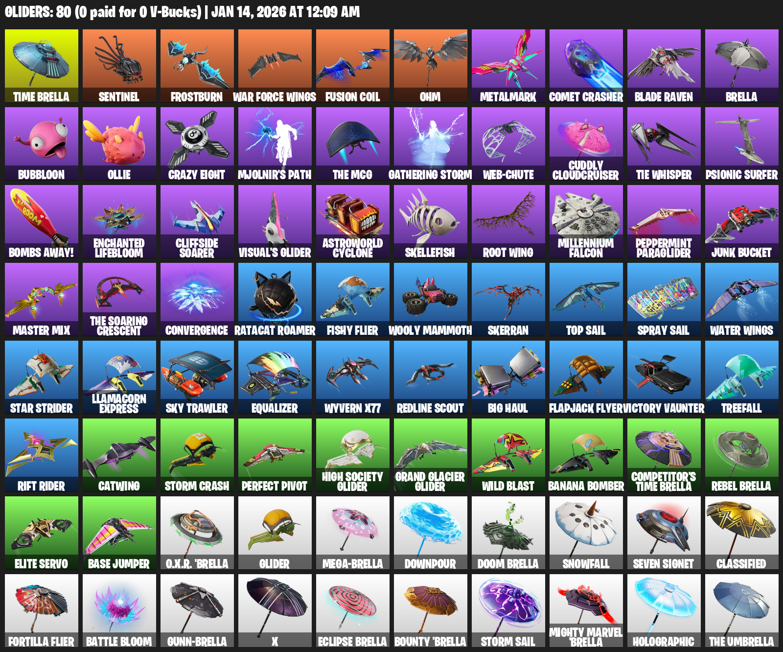 Time Brella, Sentinel, Frostburn, War Force Wings, Ohm, Metalmark, Comet Crasher, Blade Raven, Bubbloon, Ollie, Crazy Eight, Mjolnir’s Path, Gathering Storm, Cuddly Cloudcruiser, TIE Whisper, Psionic Surfer