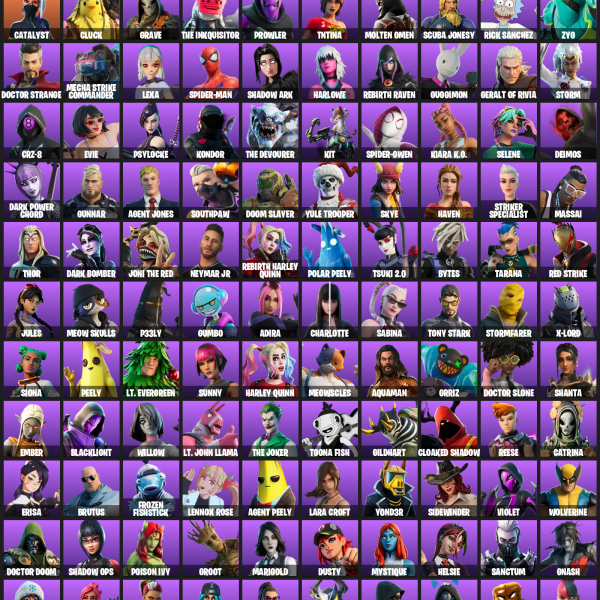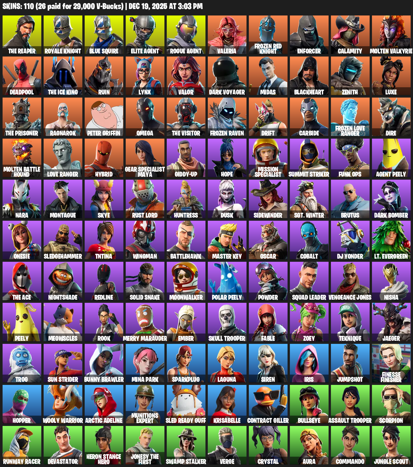 The Reaper, Royale Knight, Blue Squire, Elite Agent, Omega, Gear Specialist Maya, Valeria, Enforcer, Calamity, Molten Valkyrie, Deadpool, Ruin, Lynx, Valor, Dark Voyager, Midas, Blackheart