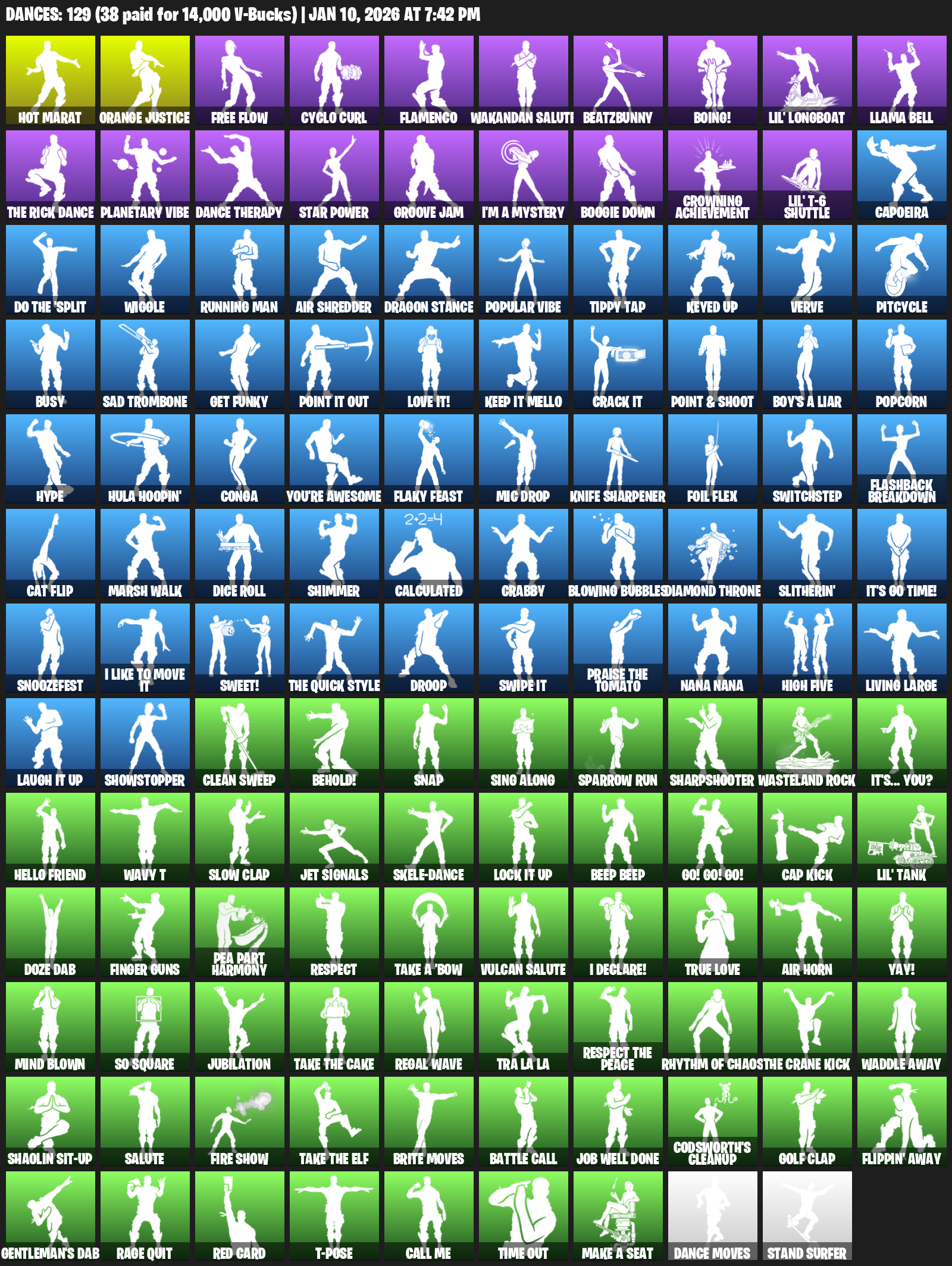 Hot Marat, Orange Justice, Free Flow, Cyclo Curl, Flamenco, Wakandan Salute, BeatzBunny, Boing!, Lil’ Longboat, Llama Bell, Planetary Vibe, Dance Therapy, Groove Jam, I’m a Mystery, Boogie Down, Crowning Achievement, Capoeira