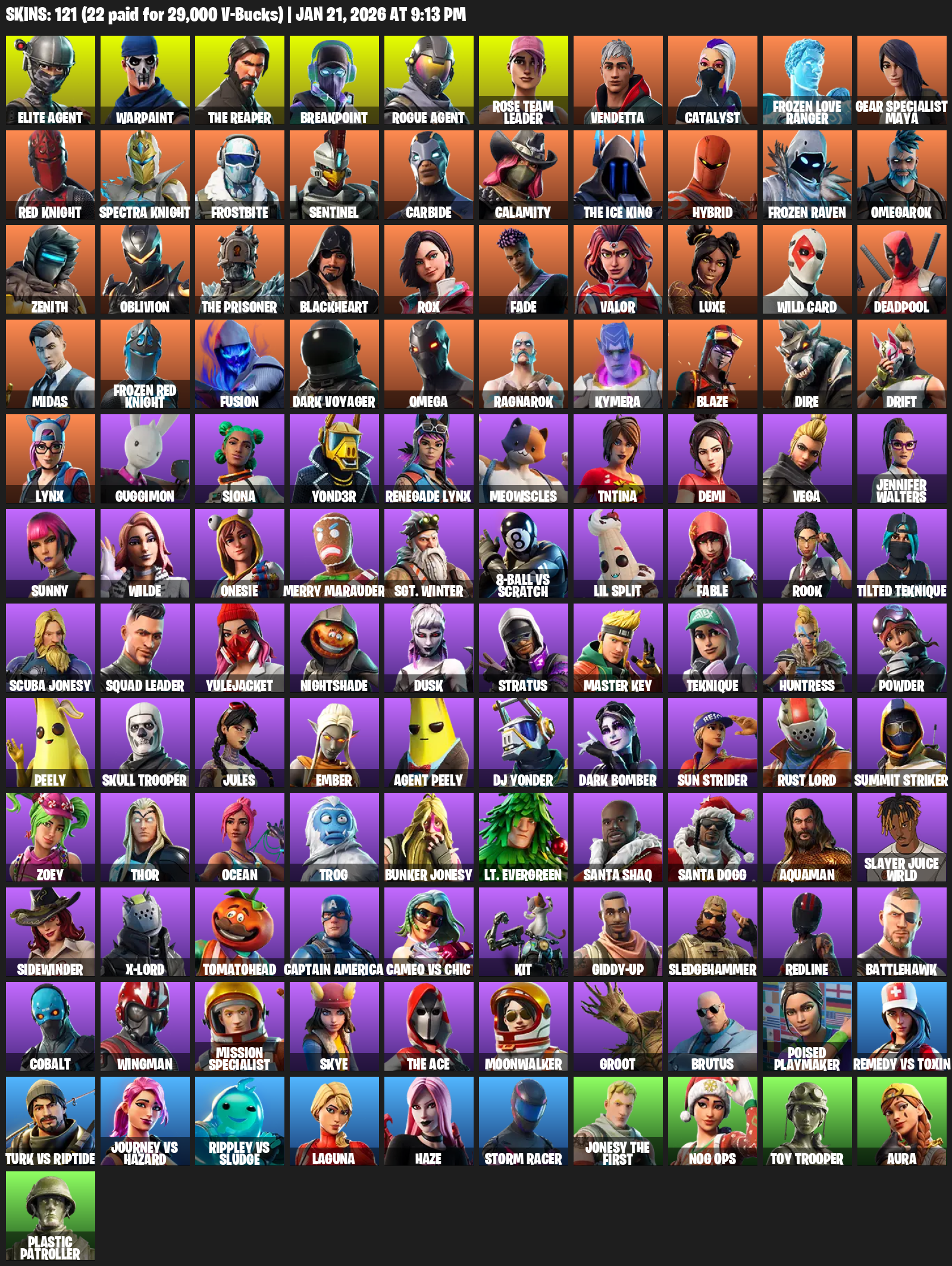 Elite Agent, The Reaper, Gear Specialist Maya, Omega, Warpaint, Breakpoint, Rose Team Leader, Vendetta, Catalyst, Frozen Love Ranger, Red Knight, Frostbite, Sentinel, Carbide, Calamity, Hybrid
