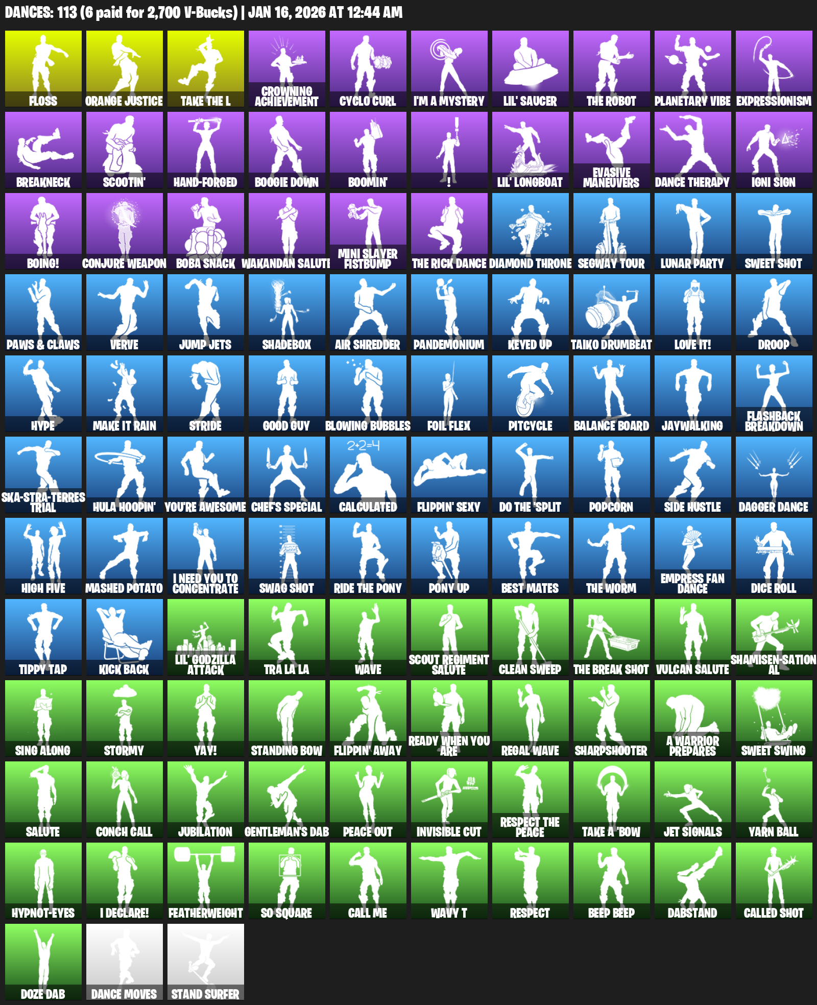 Floss, Orange Justice, Crowning Achievement, Cyclo Curl, I’m a Mystery, Lil’ Saucer, Planetary Vibe, Expressionism, Breakneck, Scootin’, Hand-Forged, Boogie Down, Boomin’, !, Evasive Maneuvers, Dance Therapy, Igni Sign
