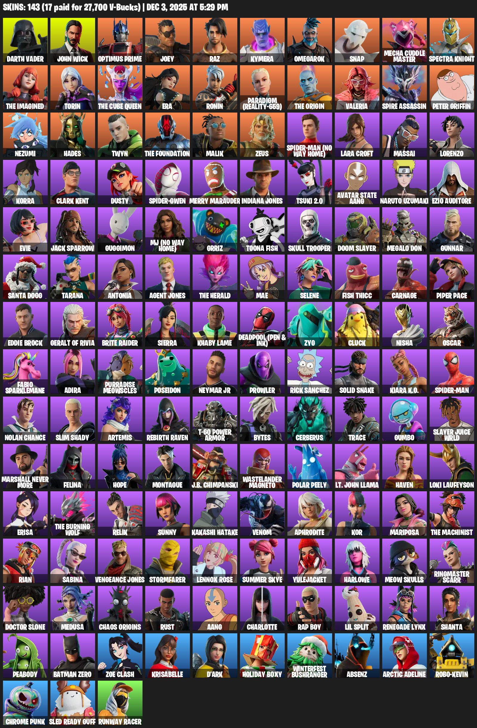 Lara Croft, Darth Vader, John Wick, Optimus Prime, Joey, Raz, Kymera, Omegarok, Snap, Mecha Cuddle Master, Spectra Knight, The Imagined, Torin, Era, Ronin, Paradigm (Reality-659), Valeria, Spire Assassin