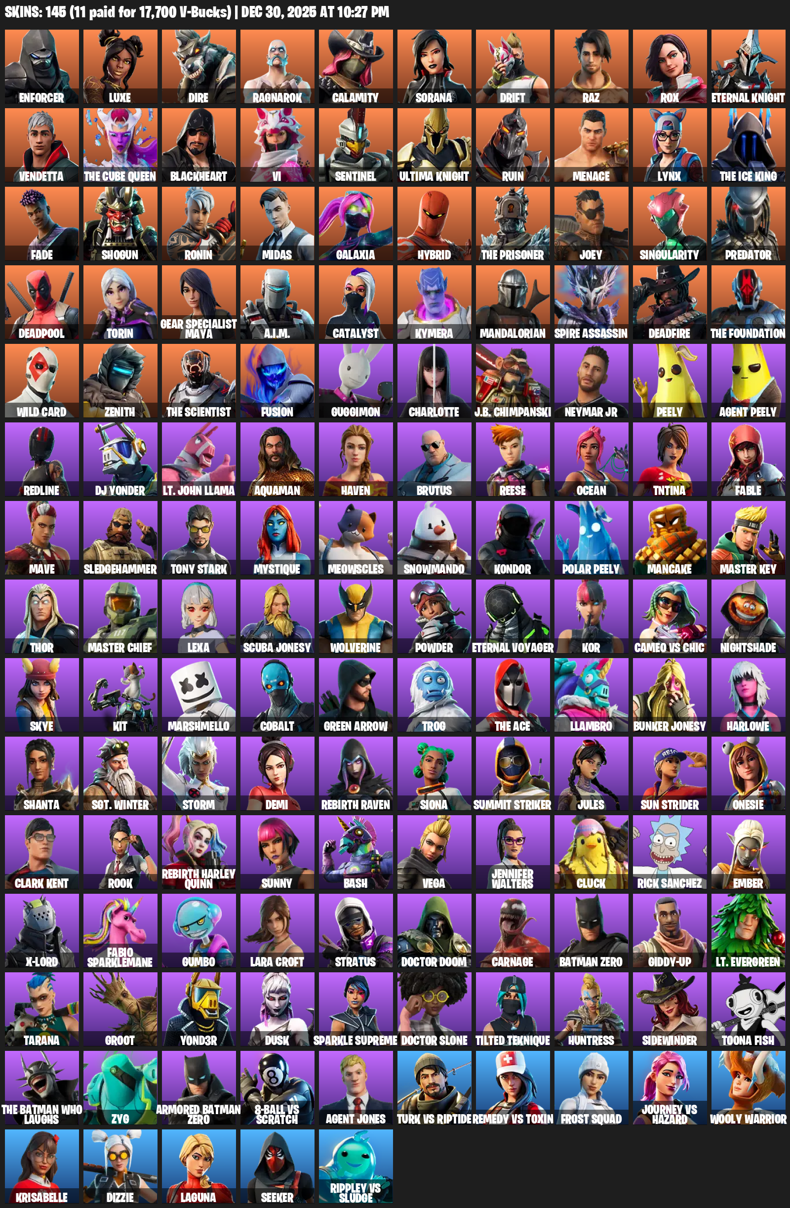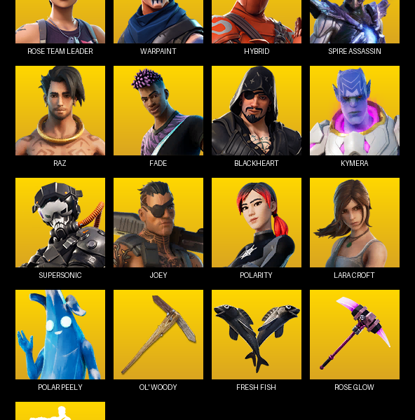 Gear Specialist Maya, Lara Croft, Enforcer, Luxe, Dire, Ragnarok, Calamity, Sorana, Drift, Raz, Rox, Eternal Knight, Vendetta, The Cube Queen, Blackheart, Vi, Sentinel, Ruin, Menace