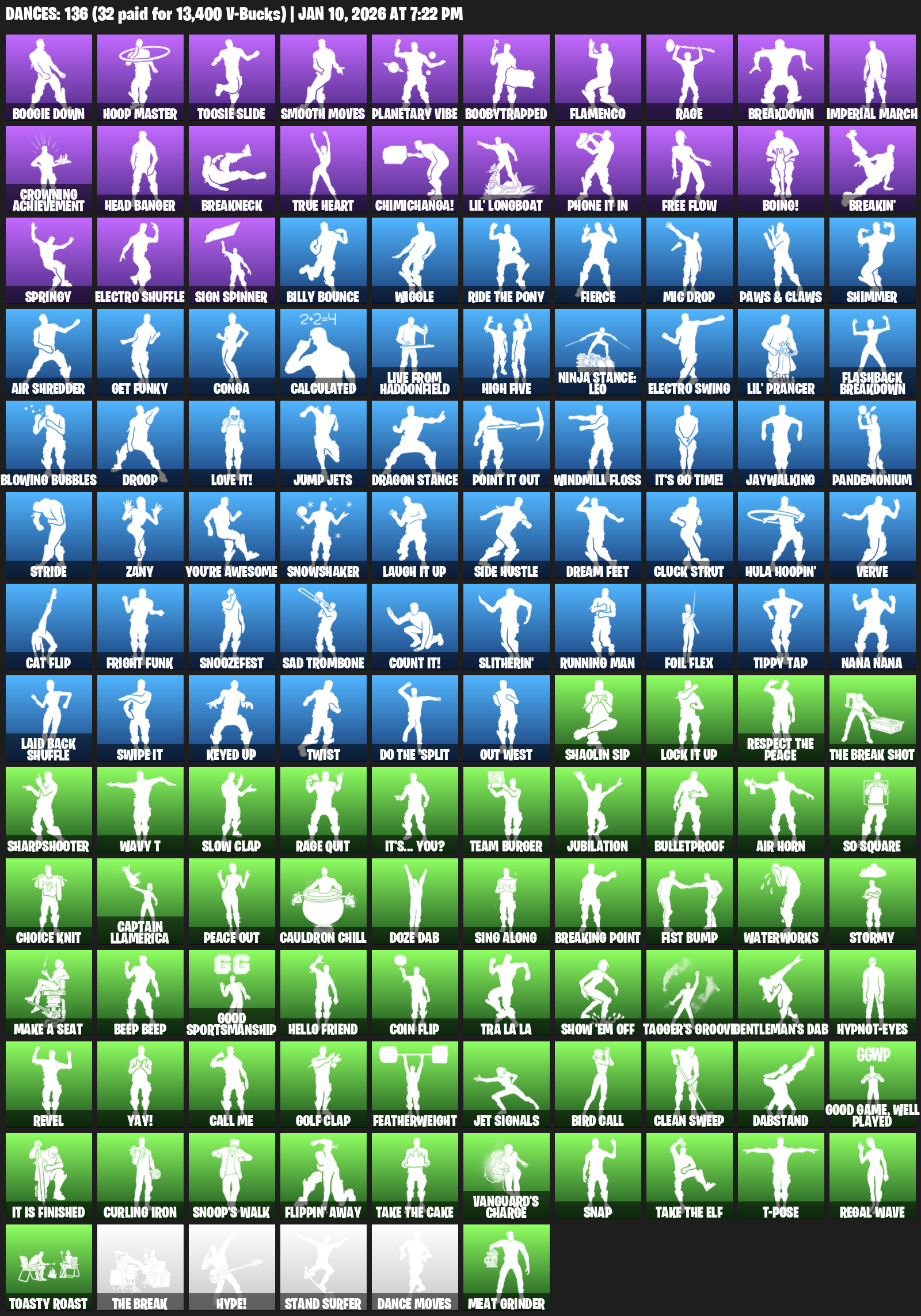 Boogie Down, Hoop Master, Toosie Slide, Smooth Moves, Planetary Vibe, Boobytrapped, Flamenco, Rage, Breakdown, Imperial March, Crowning Achievement, Head Banger, Breakneck, True Heart, Chimichanga!, Lil’ Longboat, Phone It In, Free Flow, Boing!, Breakin’