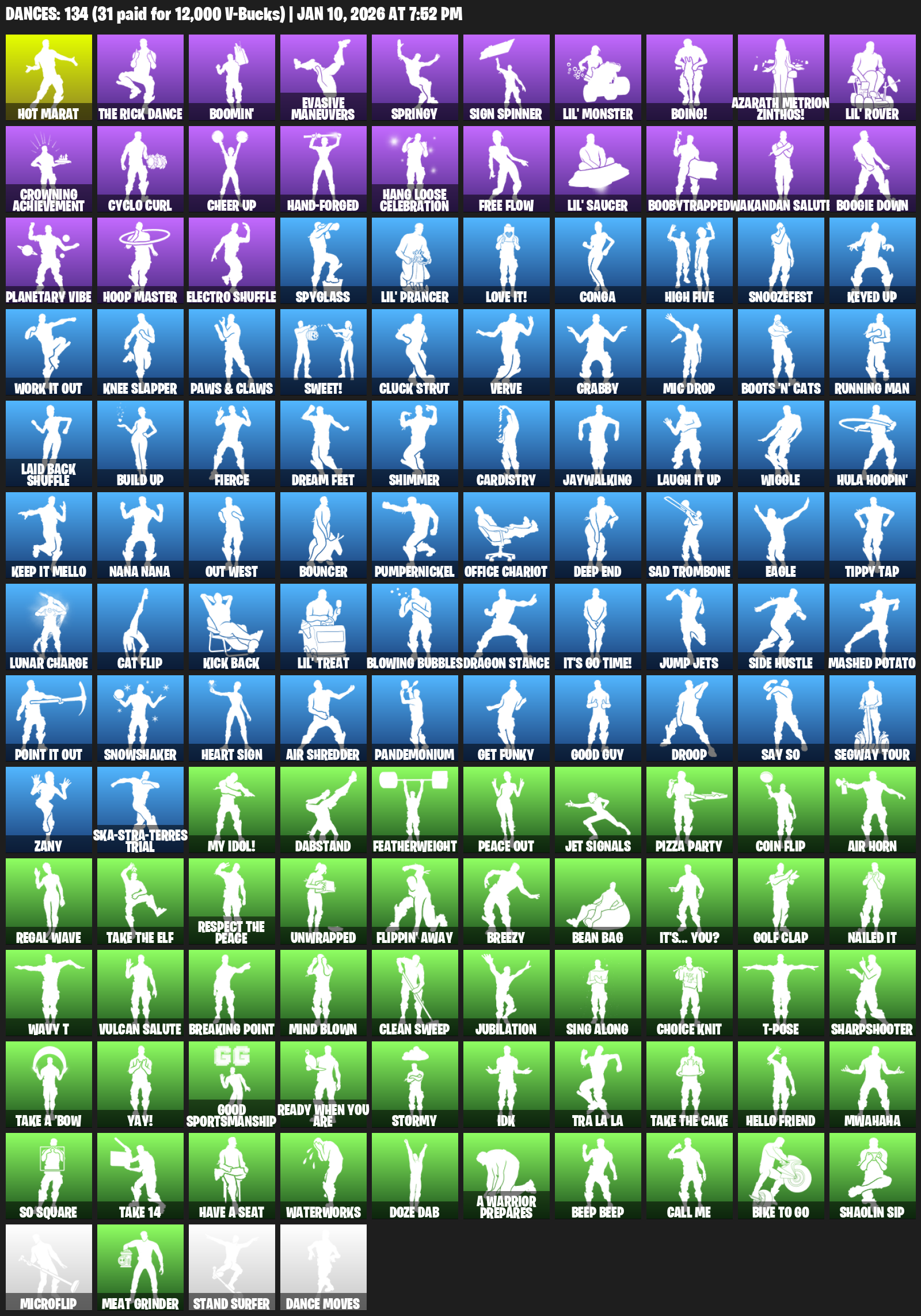 Hot Marat, Boomin’, Evasive Maneuvers, Springy, Sign Spinner, Lil’ Monster, Boing!, Azarath Metrion Zinthos!, Crowning Achievement, Cyclo Curl, Cheer Up, Hand-Forged, Hang Loose Celebration, Free Flow, Boobytrapped, Wakandan Salute, Boogie Down