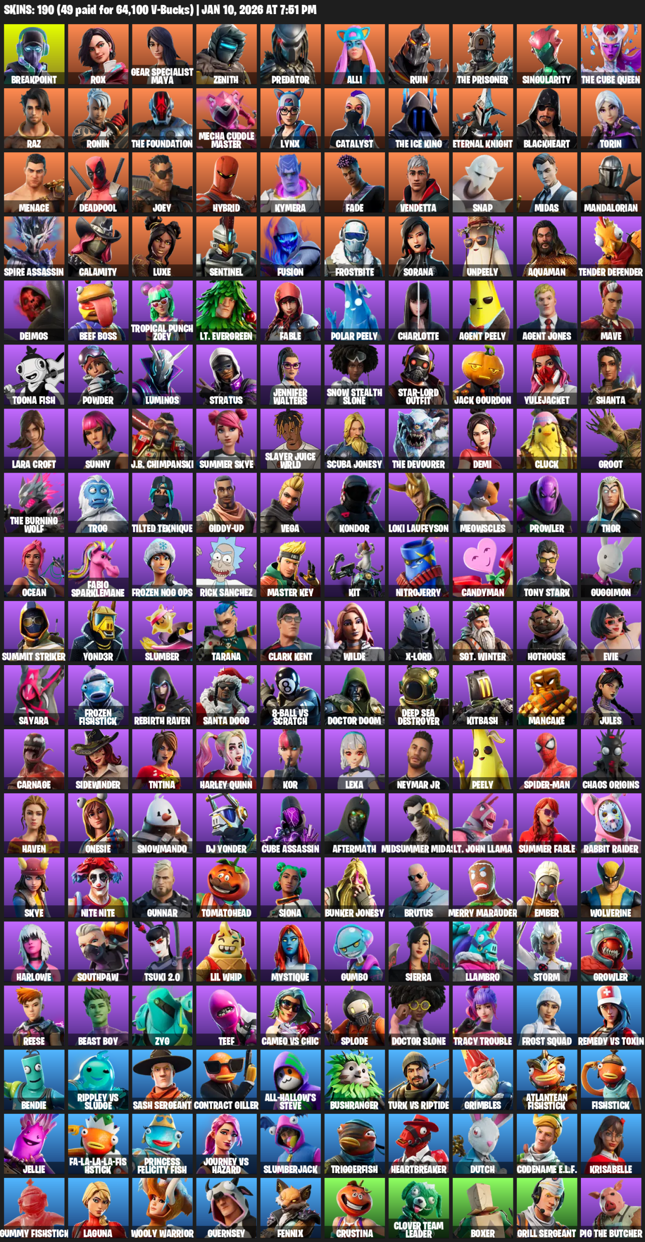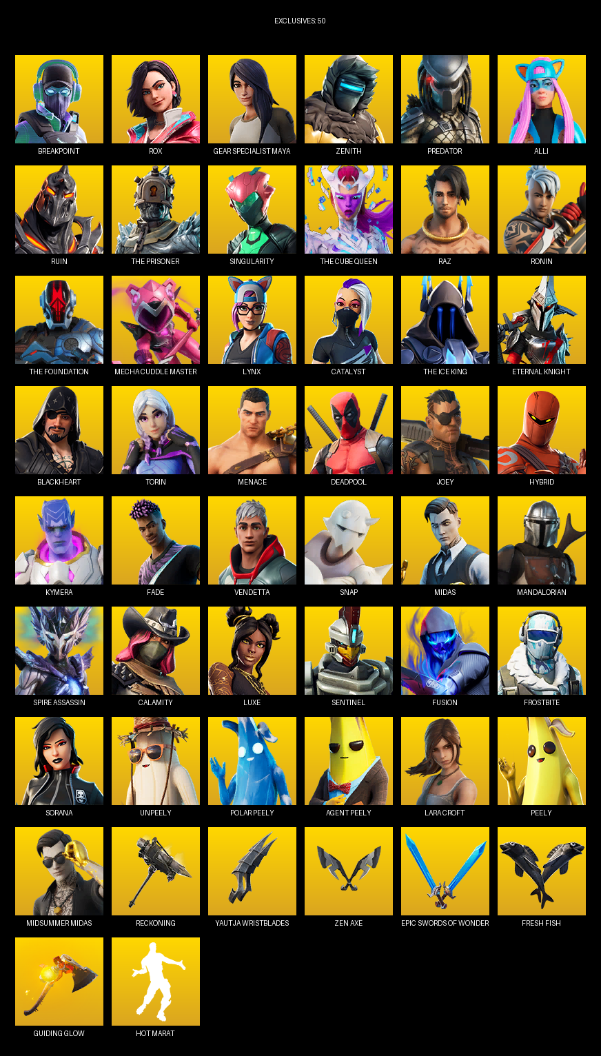 Gear Specialist Maya, Lara Croft, Breakpoint, Rox, Zenith, Predator, Alli, Ruin, The Prisoner, Singularity, Raz, Ronin, Mecha Cuddle Master, Lynx, Catalyst, Eternal Knight, Blackheart