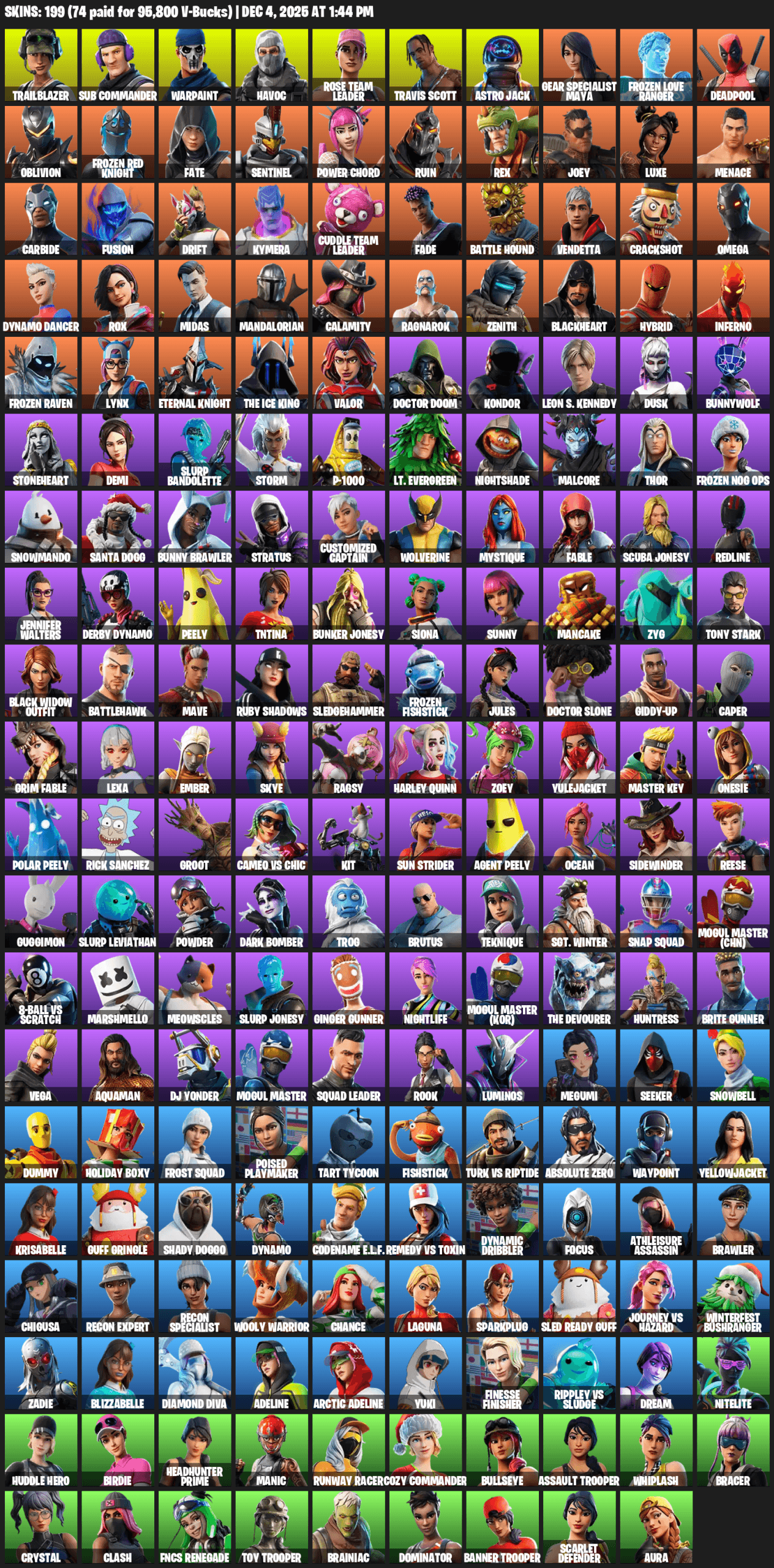 Travis Scott, Gear Specialist Maya, Omega, Trailblazer, Sub Commander, Warpaint, Havoc, Rose Team Leader, Astro Jack, Frozen Love Ranger, Deadpool, Oblivion, Fate, Sentinel, Power Chord, Ruin, Rex, Joey, Luxe