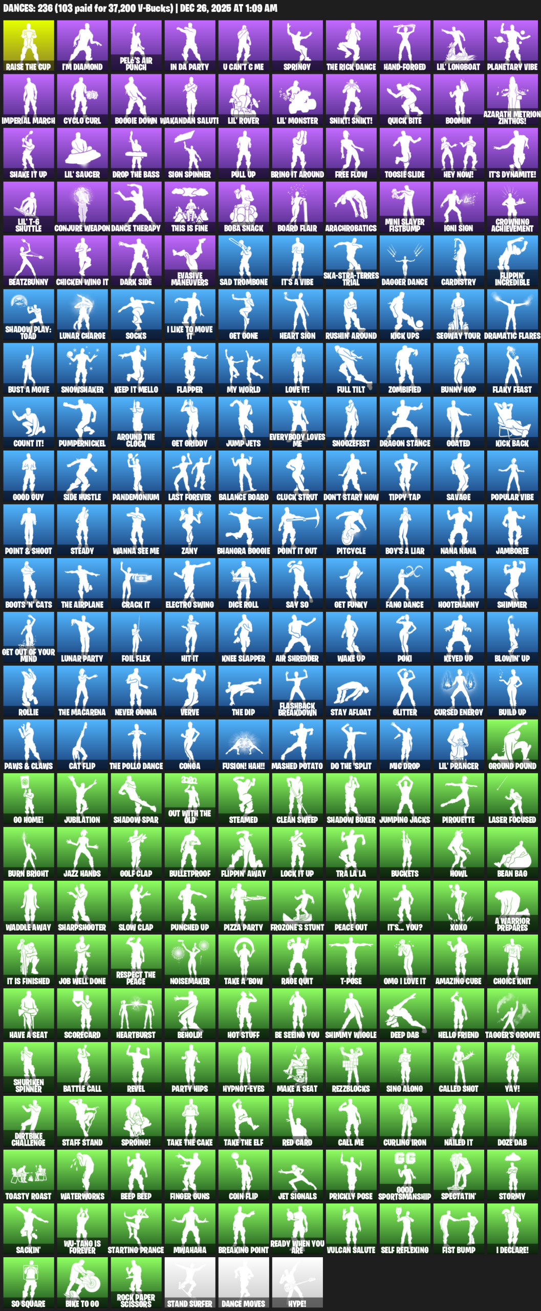 I’m Diamond, Pelé’s Air Punch, In Da Party, U Can’t C Me, Springy, Hand-Forged, Lil’ Longboat, Planetary Vibe, Imperial March, Cyclo Curl, Boogie Down, Wakandan Salute, Snikt! Snikt!, Quick Bite, Boomin’, Azarath Metrion Zinthos!