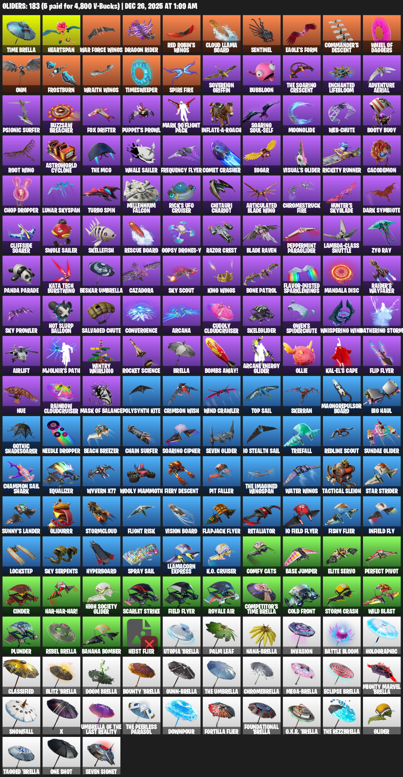 Time Brella, Heartspan, War Force Wings, Cloud Llama Board, Eagle’s Form, Commander’s Descent, Wheel of Daggers, Ohm, Frostburn, Timesweeper, Spire Fire, Sovereign Griffin, Bubbloon, Enchanted Lifebloom, Adventure Aerial