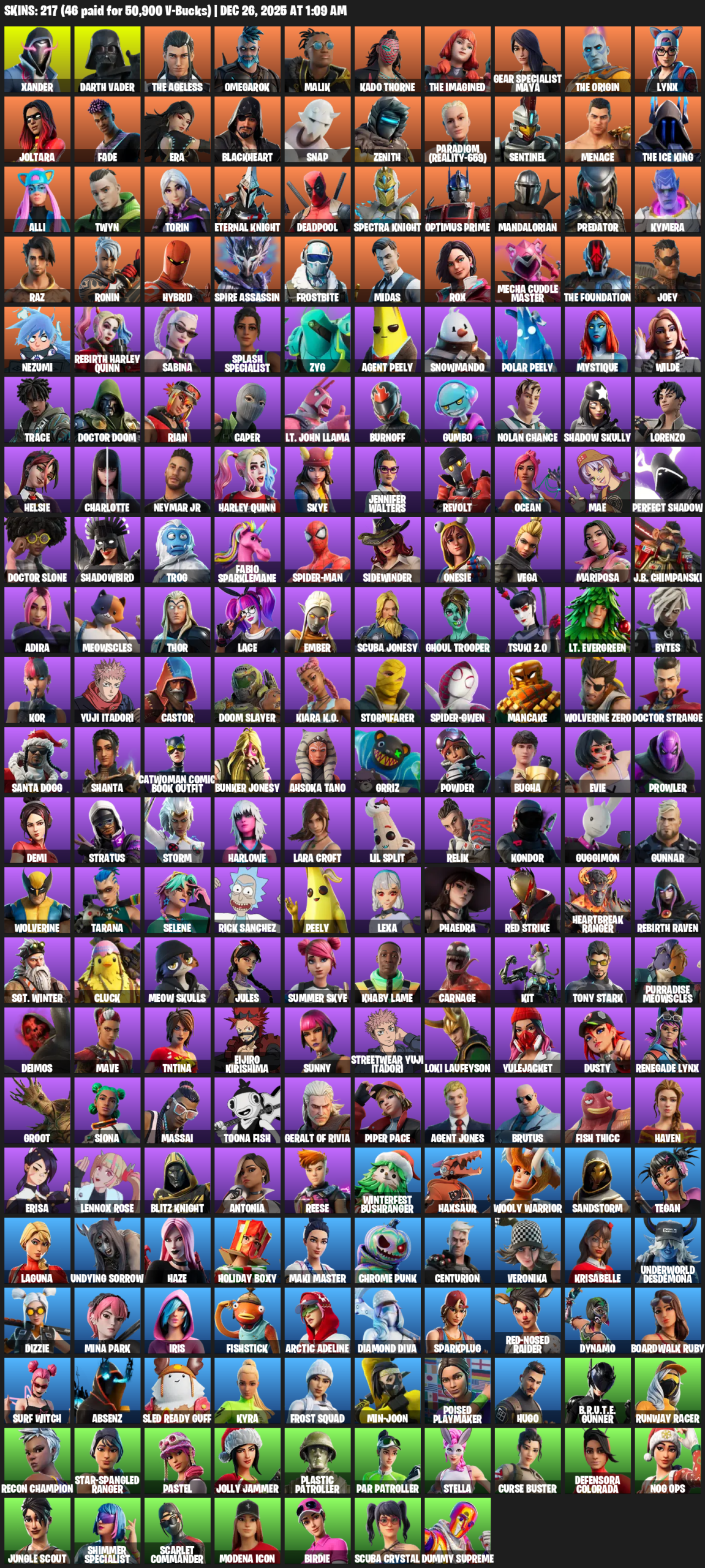 Gear Specialist Maya, Lara Croft, Xander, Darth Vader, The Ageless, Omegarok, Malik, Kado Thorne, Lynx, Joltara, Fade, Era, Blackheart, Snap, Zenith, Paradigm (Reality-659), Sentinel, Menace