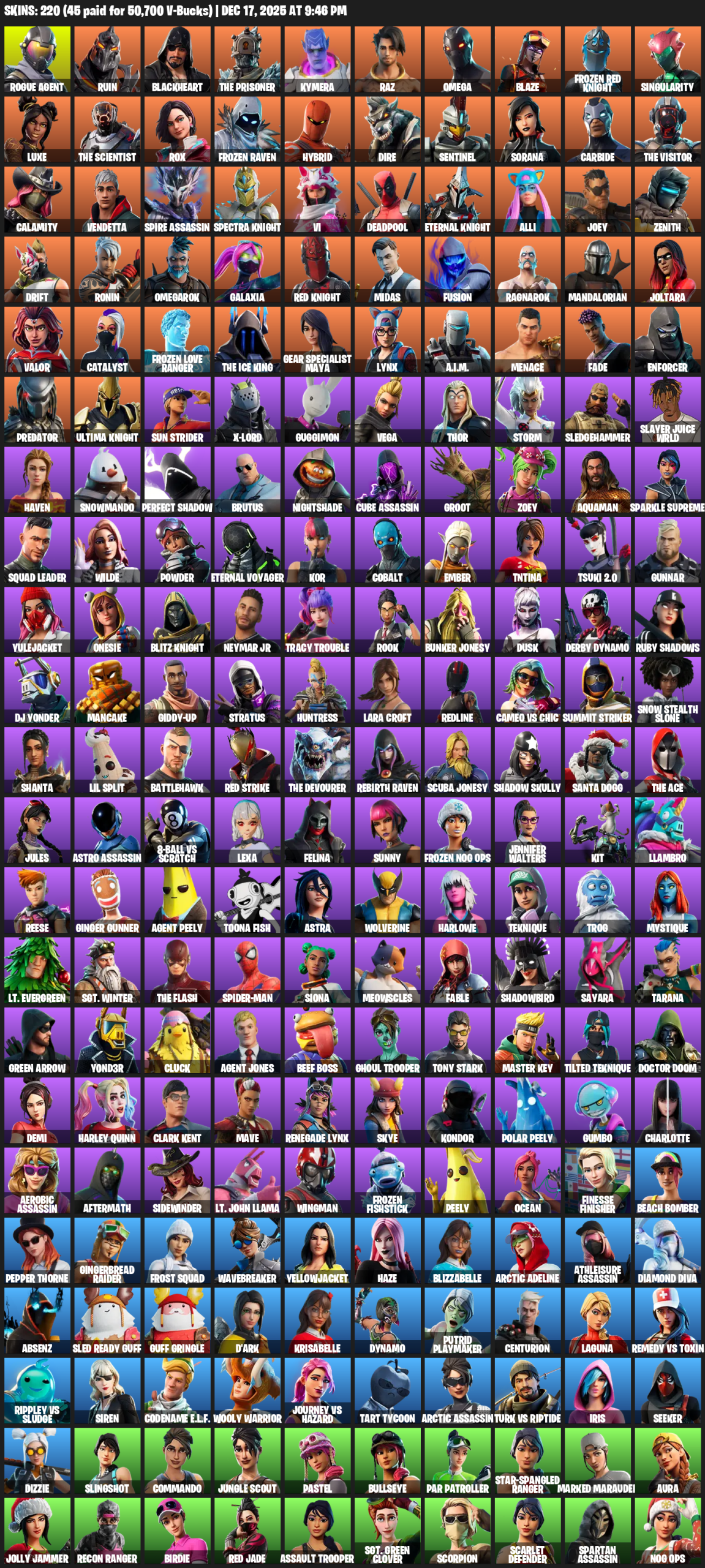 Omega, Gear Specialist Maya, Lara Croft, Rogue Agent, Ruin, Blackheart, The Prisoner, Kymera, Raz, Blaze, Frozen Red Knight, Singularity, Luxe, Rox, Hybrid, Dire, Sentinel, Sorana