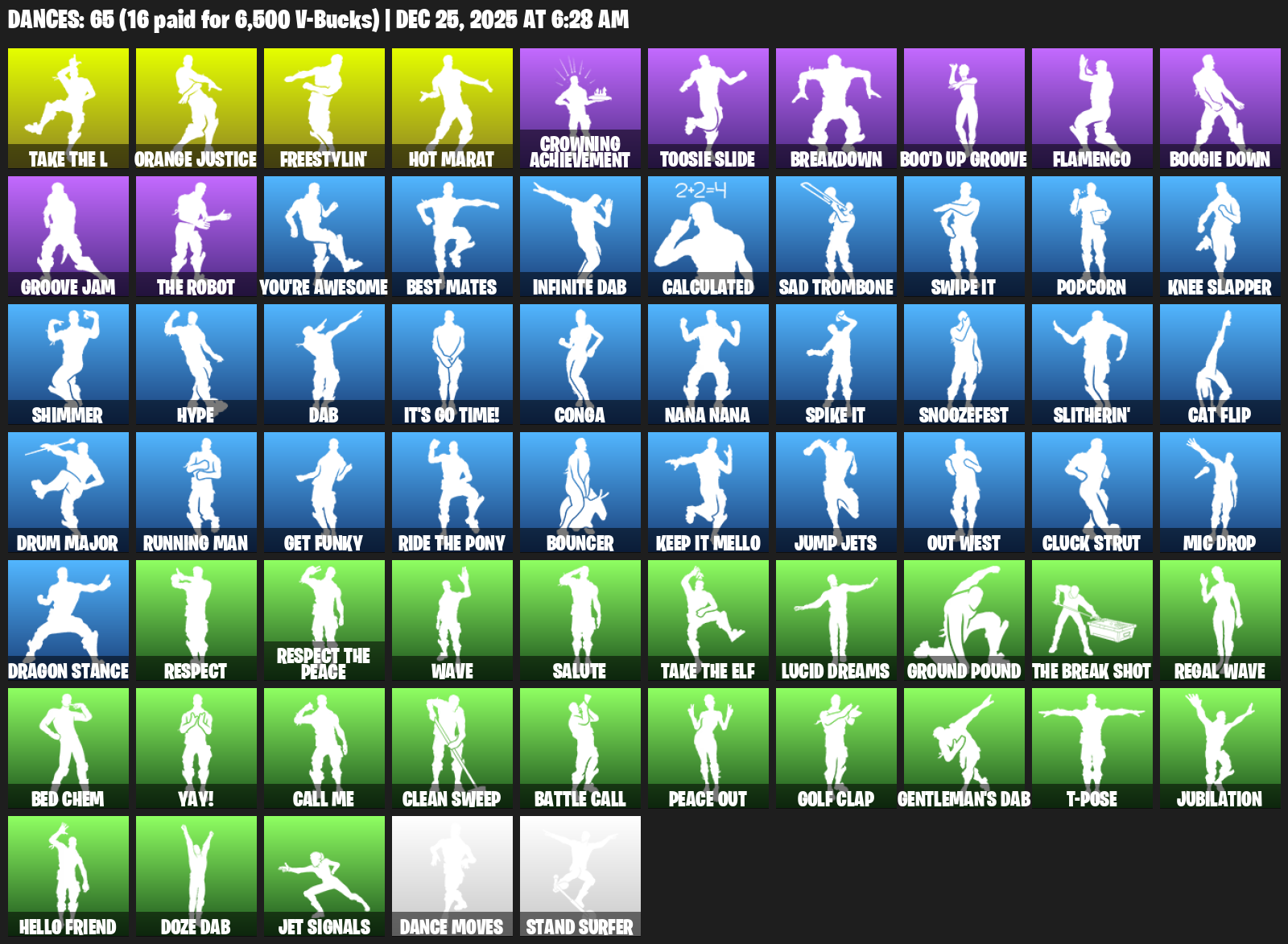 Hot Marat, Orange Justice, Freestylin’, Crowning Achievement, Toosie Slide, Breakdown, Boo’d Up Groove, Flamenco, Boogie Down, You’re Awesome, Best Mates, Infinite Dab, Calculated, Sad Trombone, Swipe It, Popcorn, Knee Slapper