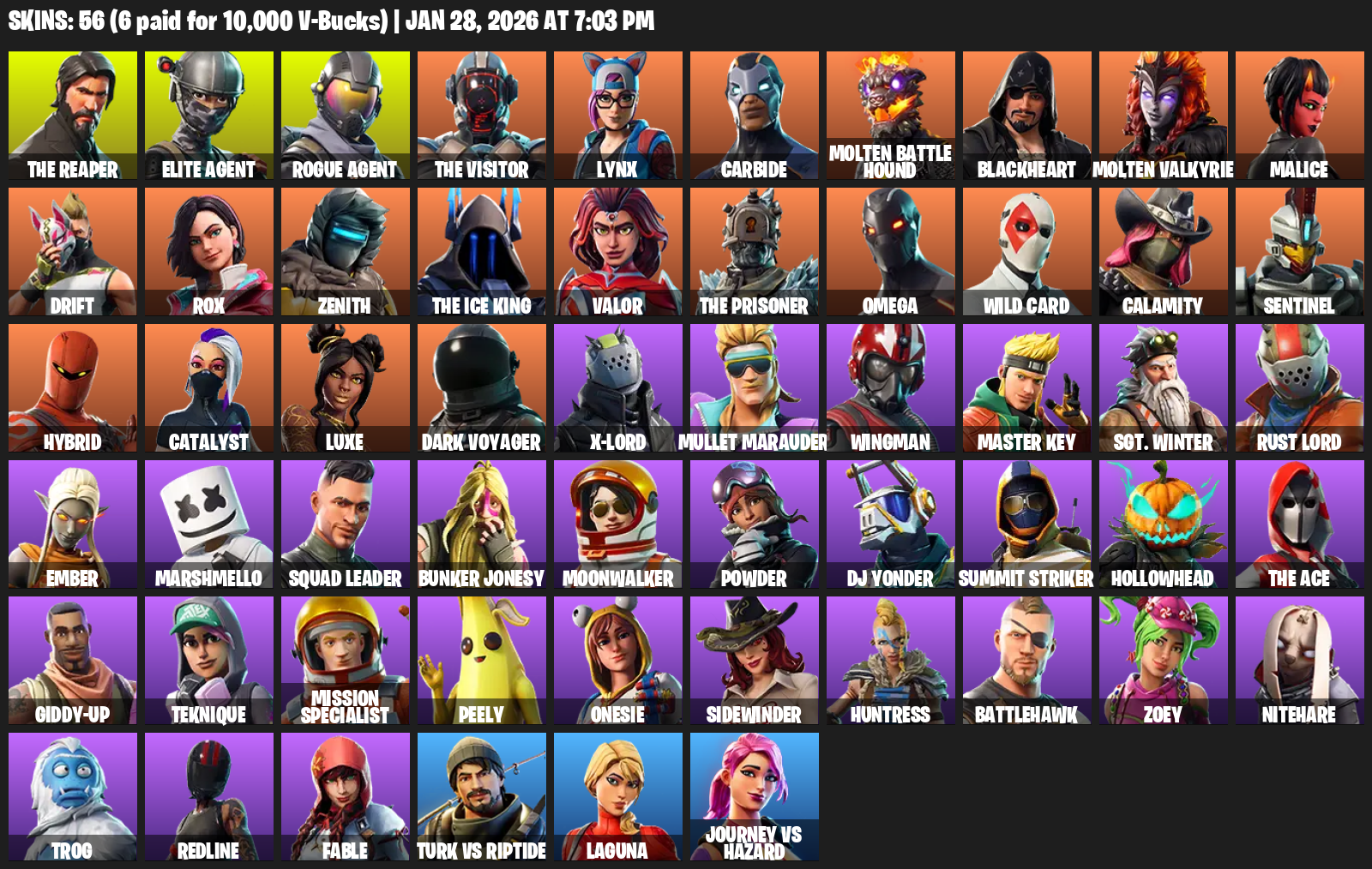 [PC/PSN] | 56 skins | Take The L | The Reaper | Elite Agent | Omega | Rogue Agent | The Visitor | Lynx | Carbide | Molten Battle Hound | #XWJ6830